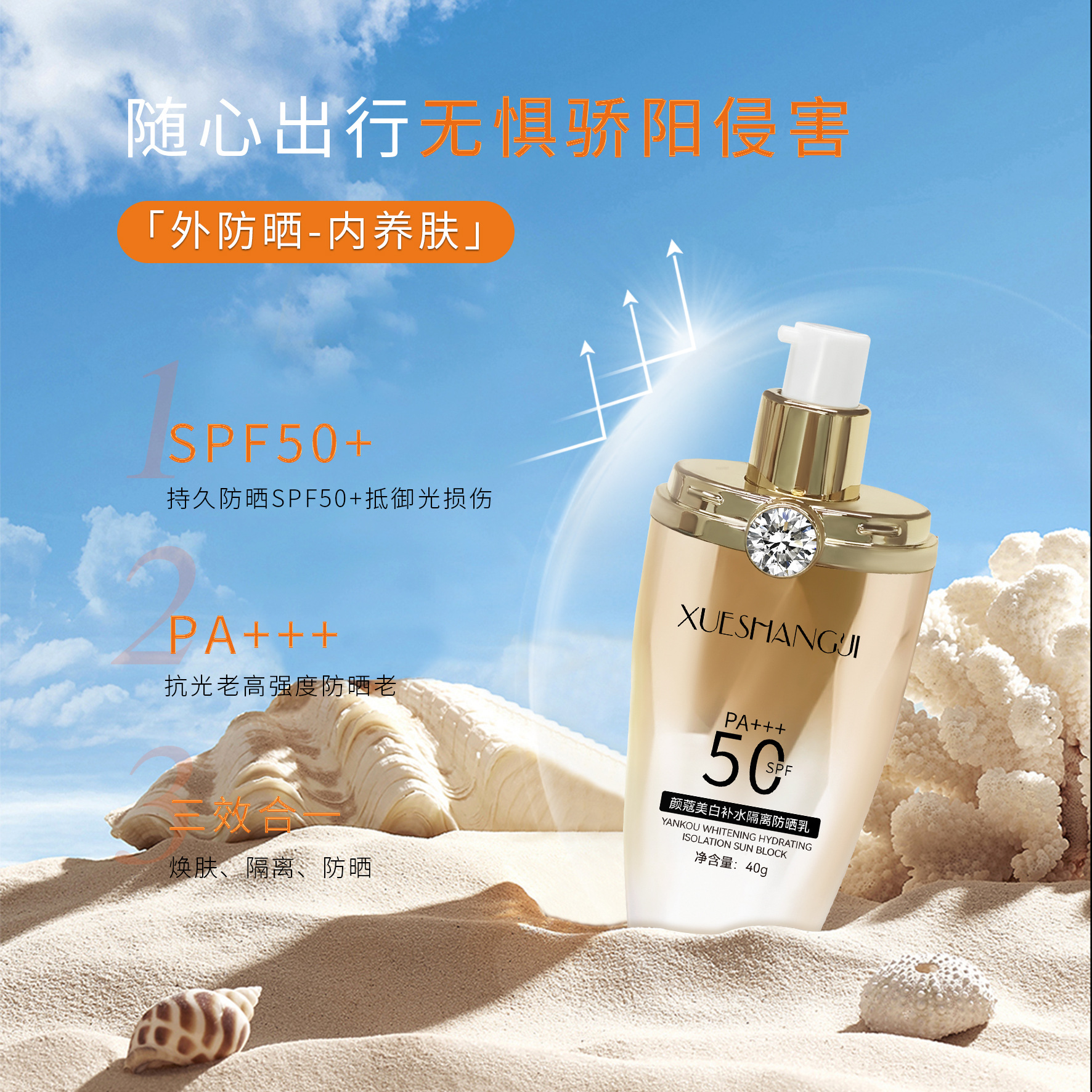 📚 美白防晒乳SPF50PA+++面部保湿隔离防晒霜妆前乳防晒乳防水防汗