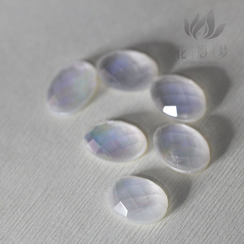 📚 10/10*14mm白黄黑蝶贝粉贝切面玻璃贴蝶贝戒面*饰品DIY配件材料