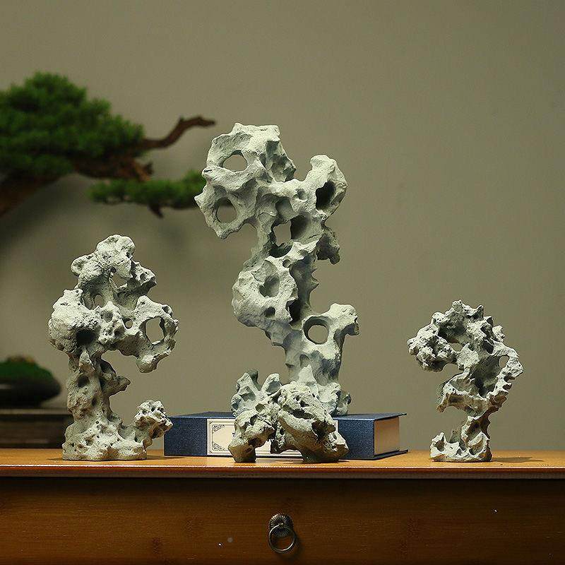 📚 仿真太湖石鱼迷你小摆件青石砂沙4pRNSb2J缸盘茶桌假室山石微景观