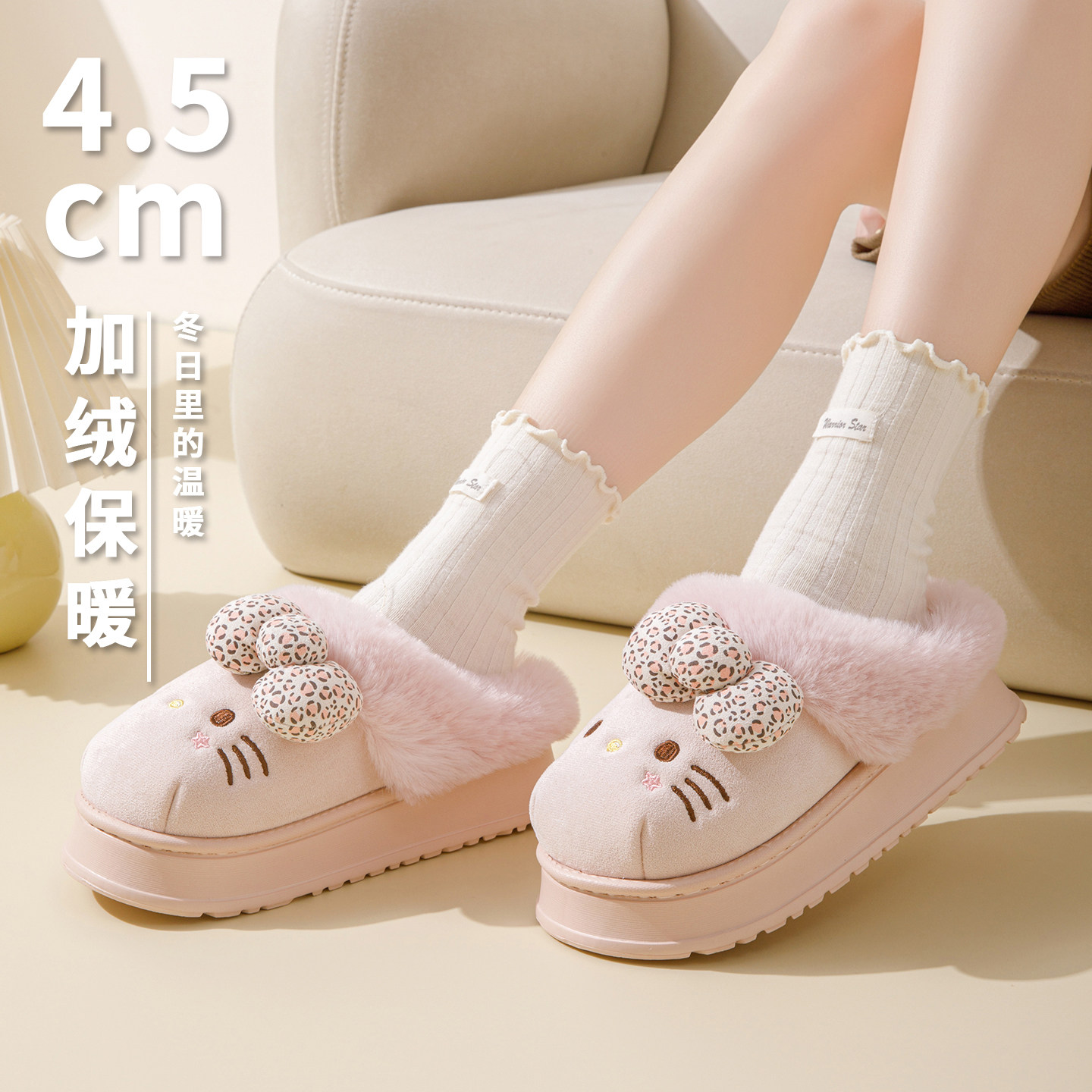 📚 Kitty猫棉拖鞋女居家新款网红可爱三丽鸥厚底eva拖鞋冬季加绒保暖
