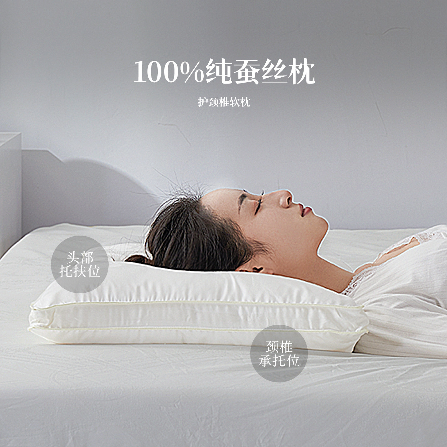 📚 邵氏 100纯蚕丝枕头 无压枕深睡枕芯低枕床品软枕家用好睡眠