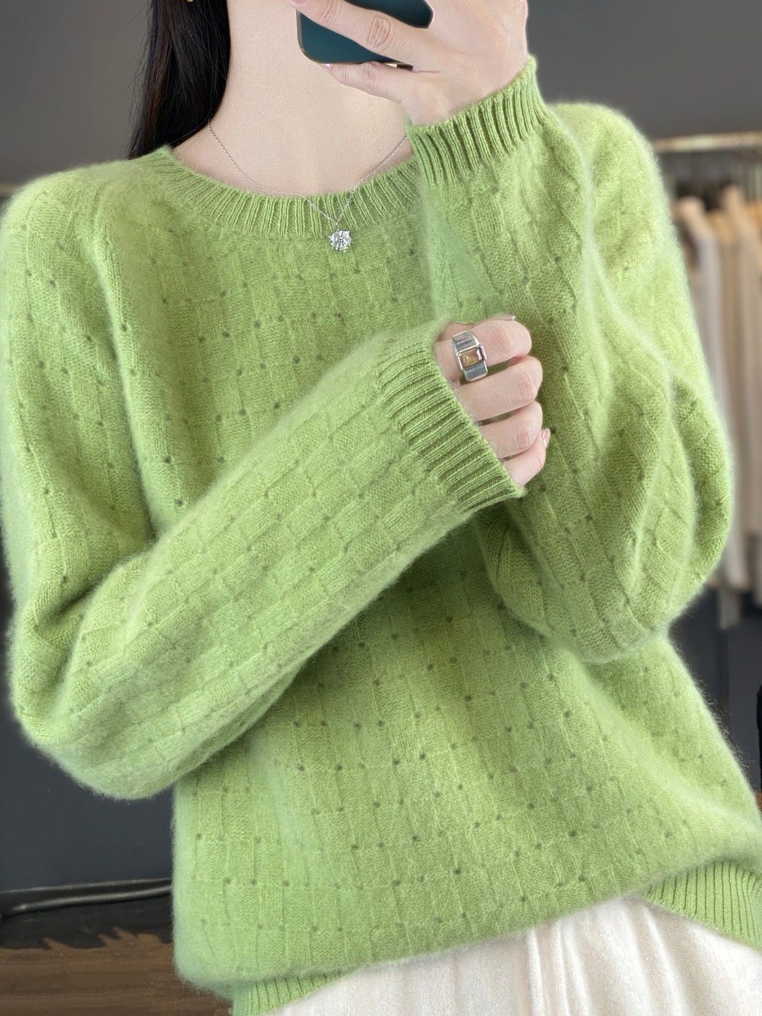 #纯羊毛衫 #圆领毛衣 #镂空华夫格 #洋气打底衫 #种草笔记