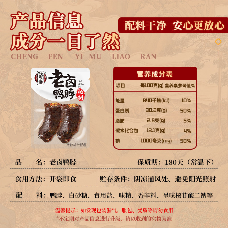 📚 钱家香老卤鸭脖约约620g熟食卤味小吃休闲零食鸭脖