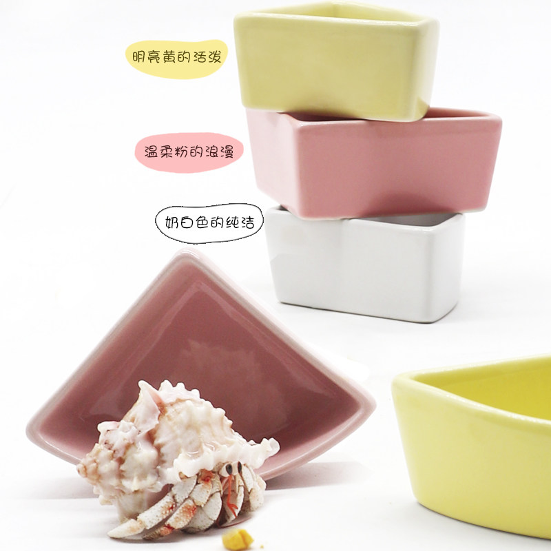 📚 寄居蟹陶瓷三角水盆食盆~角落空间巧利用迷你多功能水盆防倾倒