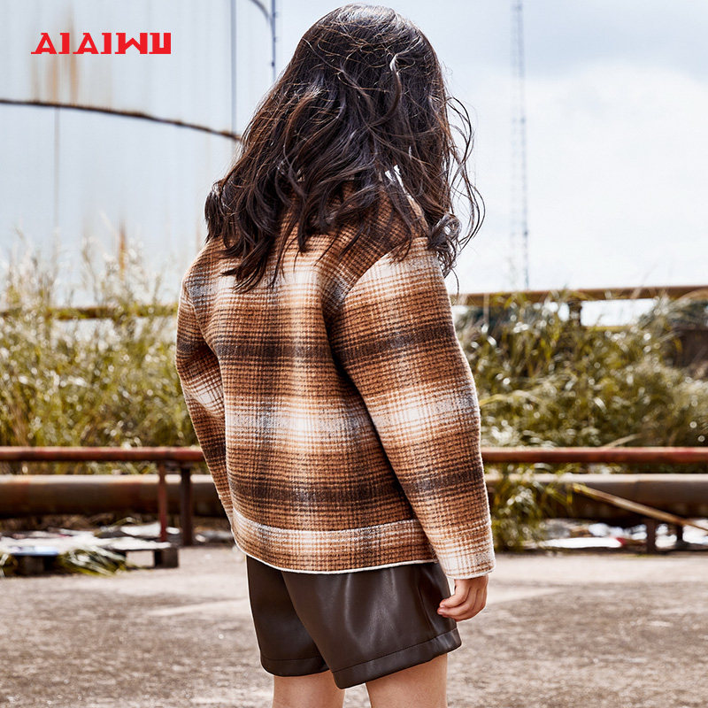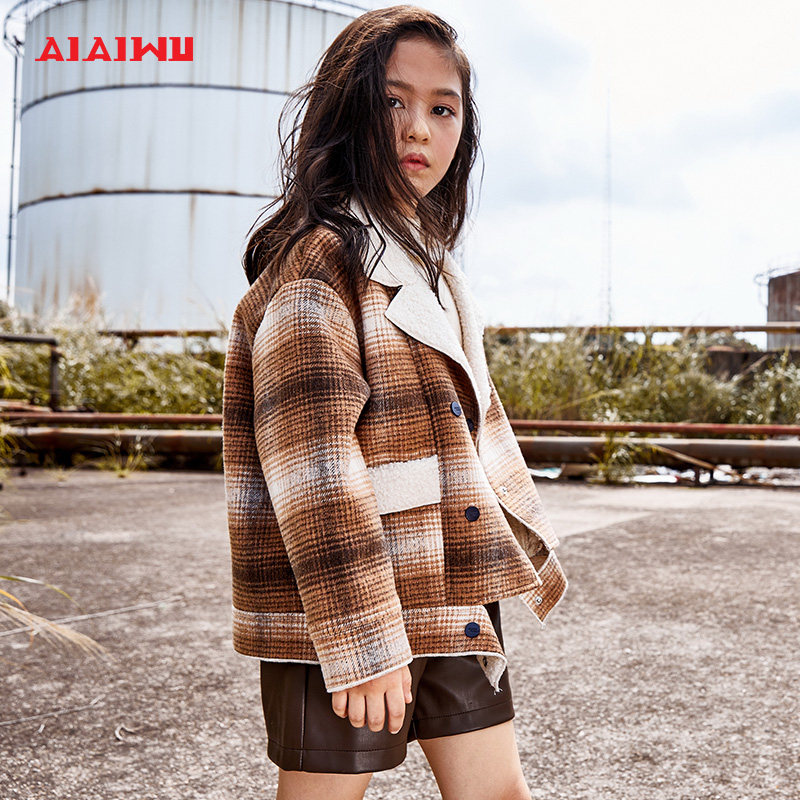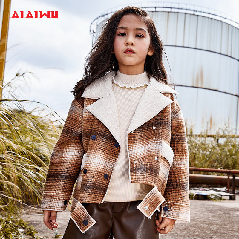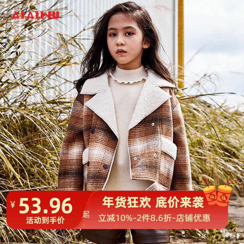 📚 艾艾屋童装女童翻领格纹羊羔绒夹克衫 冬季 绵羊毛呢子外套