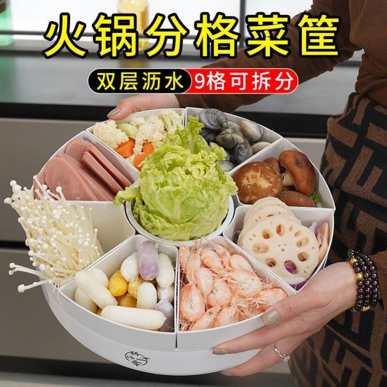 📚 九宫格托盘火锅分格盘羊肉蔬菜拼盘专用盆沥水篮餐具多功能配菜盘