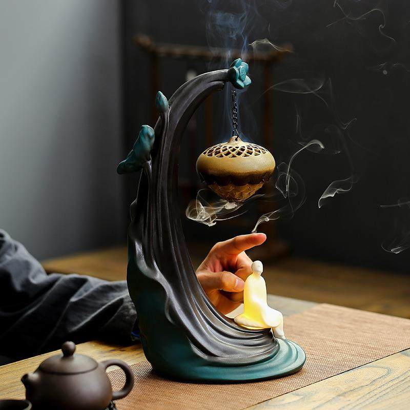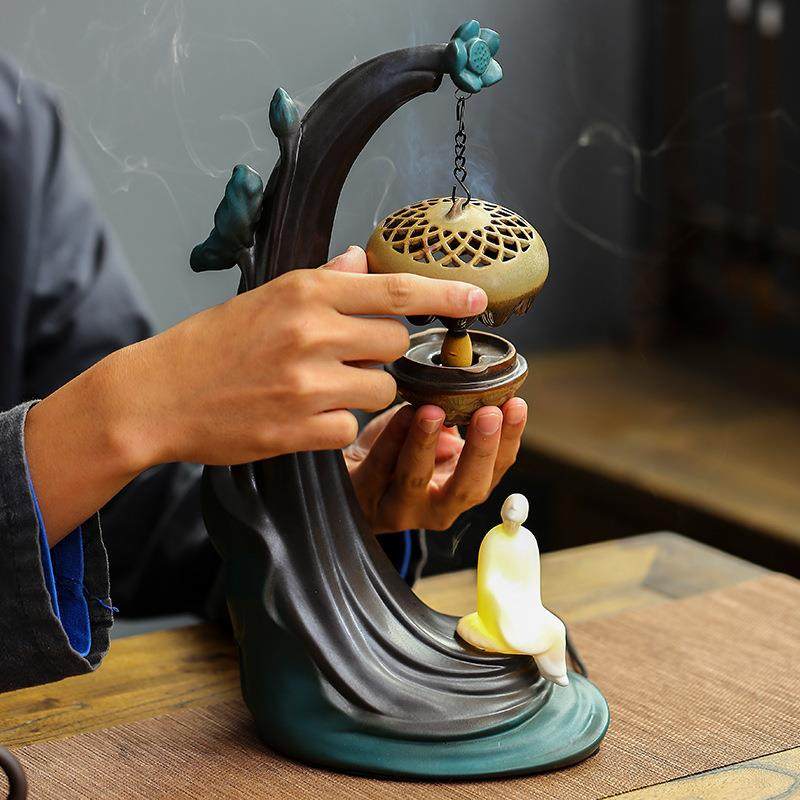 📚 荷花吊球倒流香炉 灯圈吊炉创意盘香 檀香炉香道香薰炉小夜灯摆件