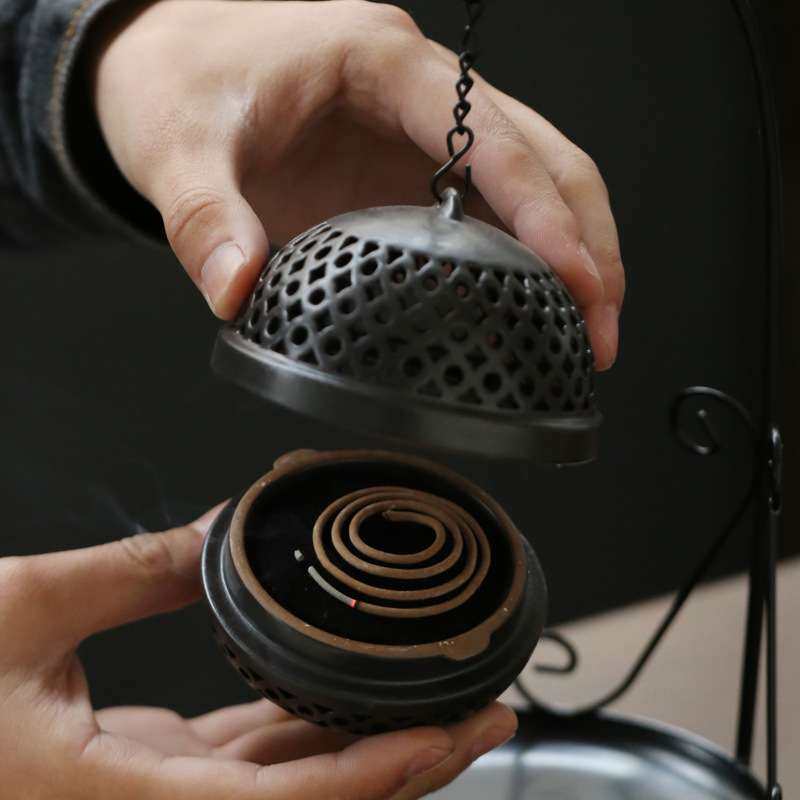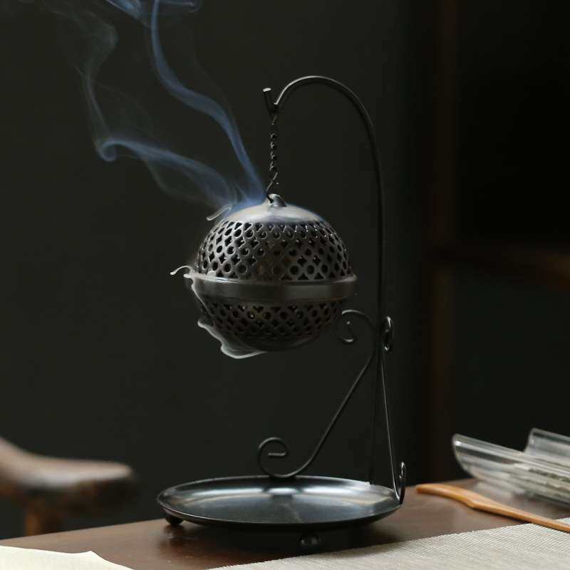 📚 铁架吊球香炉 创意盘香 檀香炉家用室内供佛茶道香薰炉摆件手工