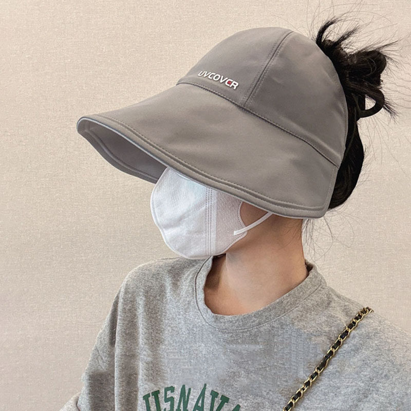 📚 可扎高马尾显脸小冰丝渔夫帽子女夏新款遮脸防晒帽折叠空顶鸭舌帽