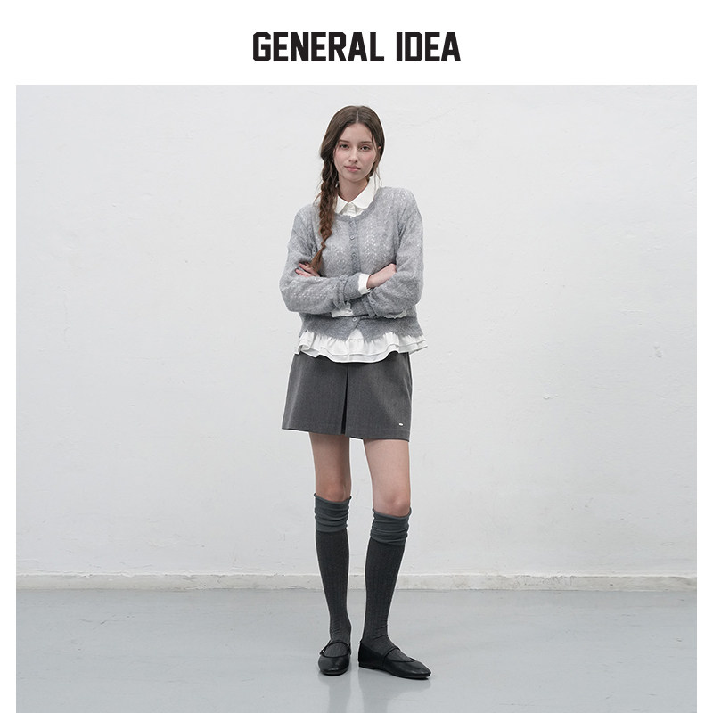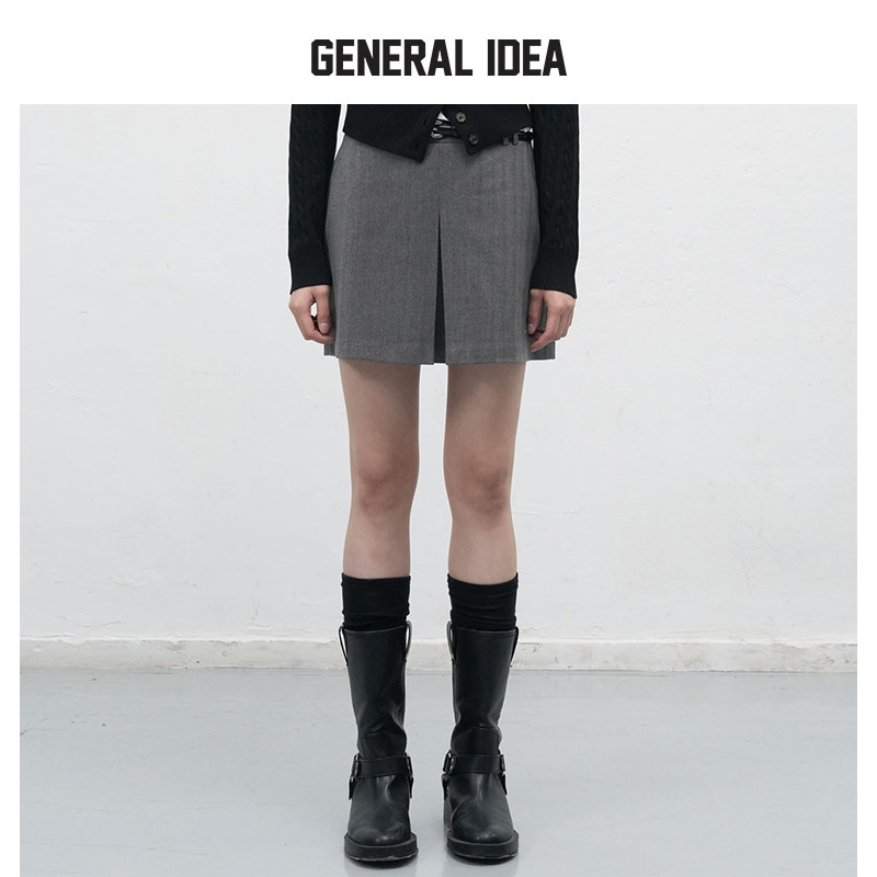 📚 GENERAL IDEA BY BUMSUK鱼骨纹理双褶设计英伦风直筒裙裤短裤女