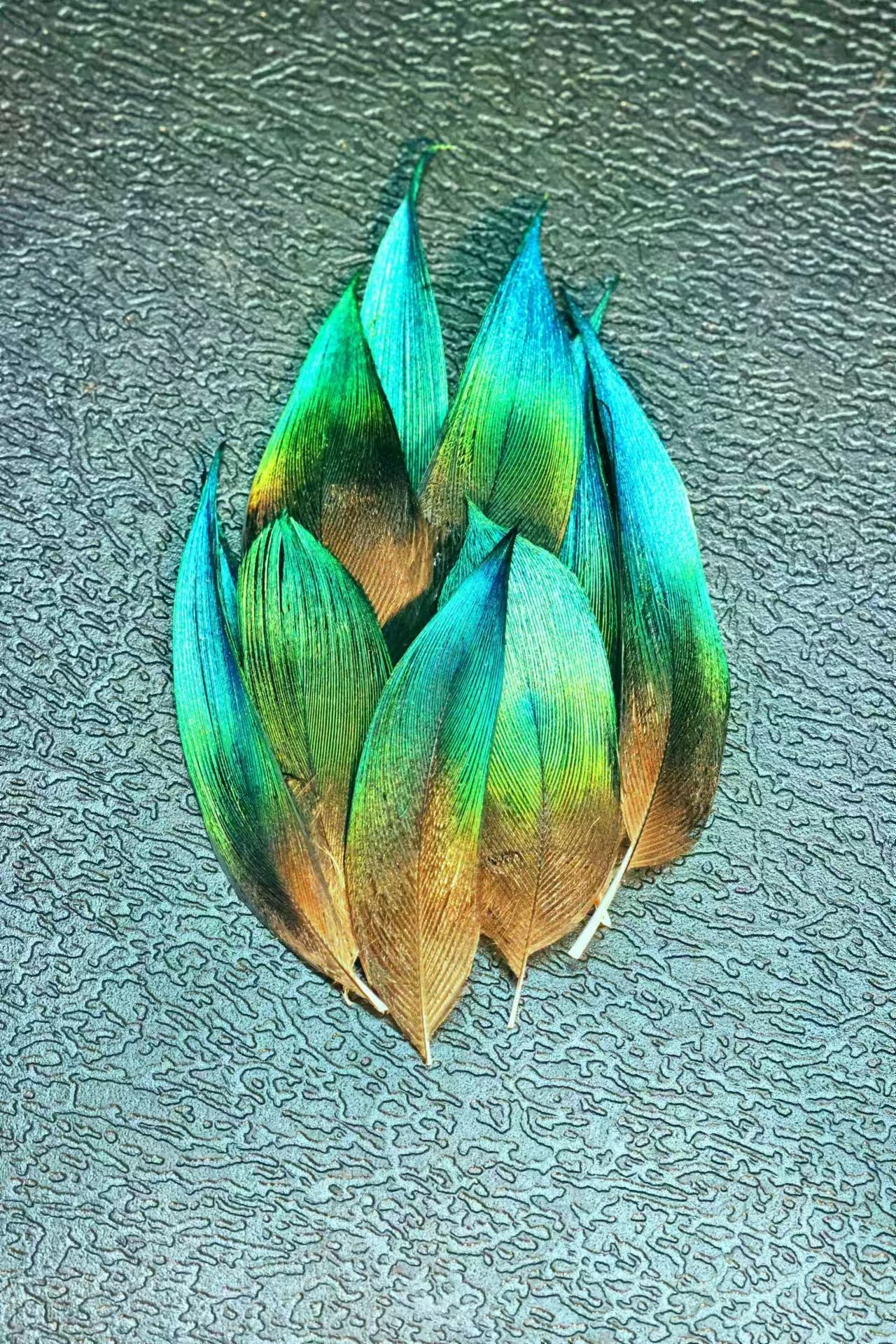 📚 点翠工艺上浆绿蓝片稀少特色羽毛做高端点翠配饰大片DIY仿点翠羽