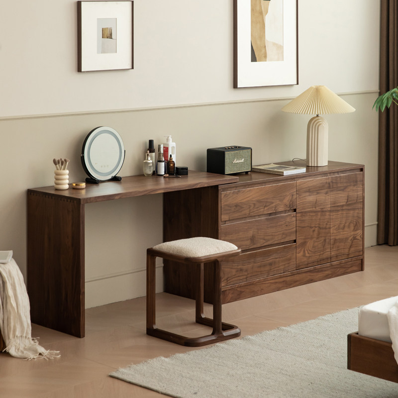 📚 北欧全实木伸缩斗柜搭台组合化妆办公一体桌卧室多功能收纳梳妆台