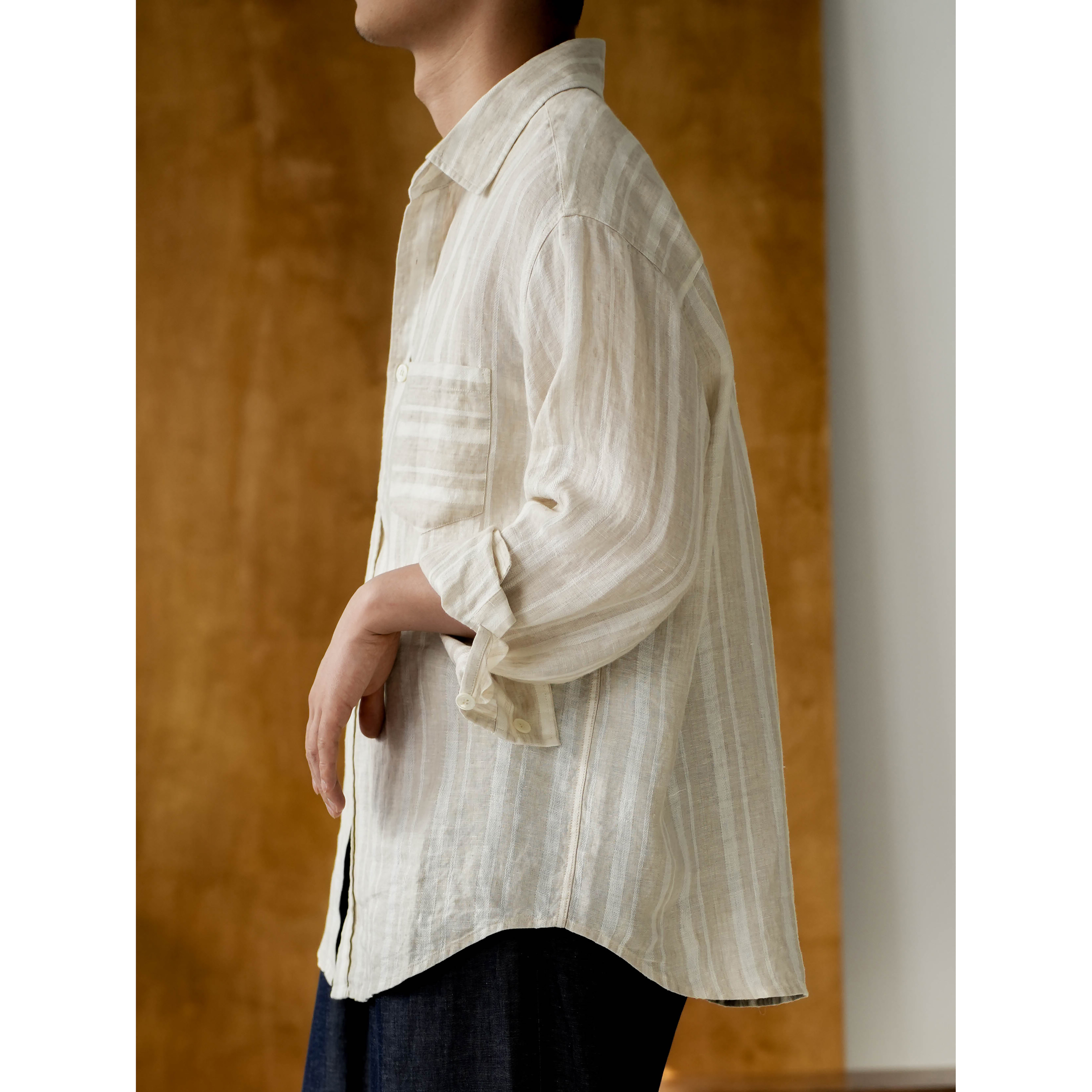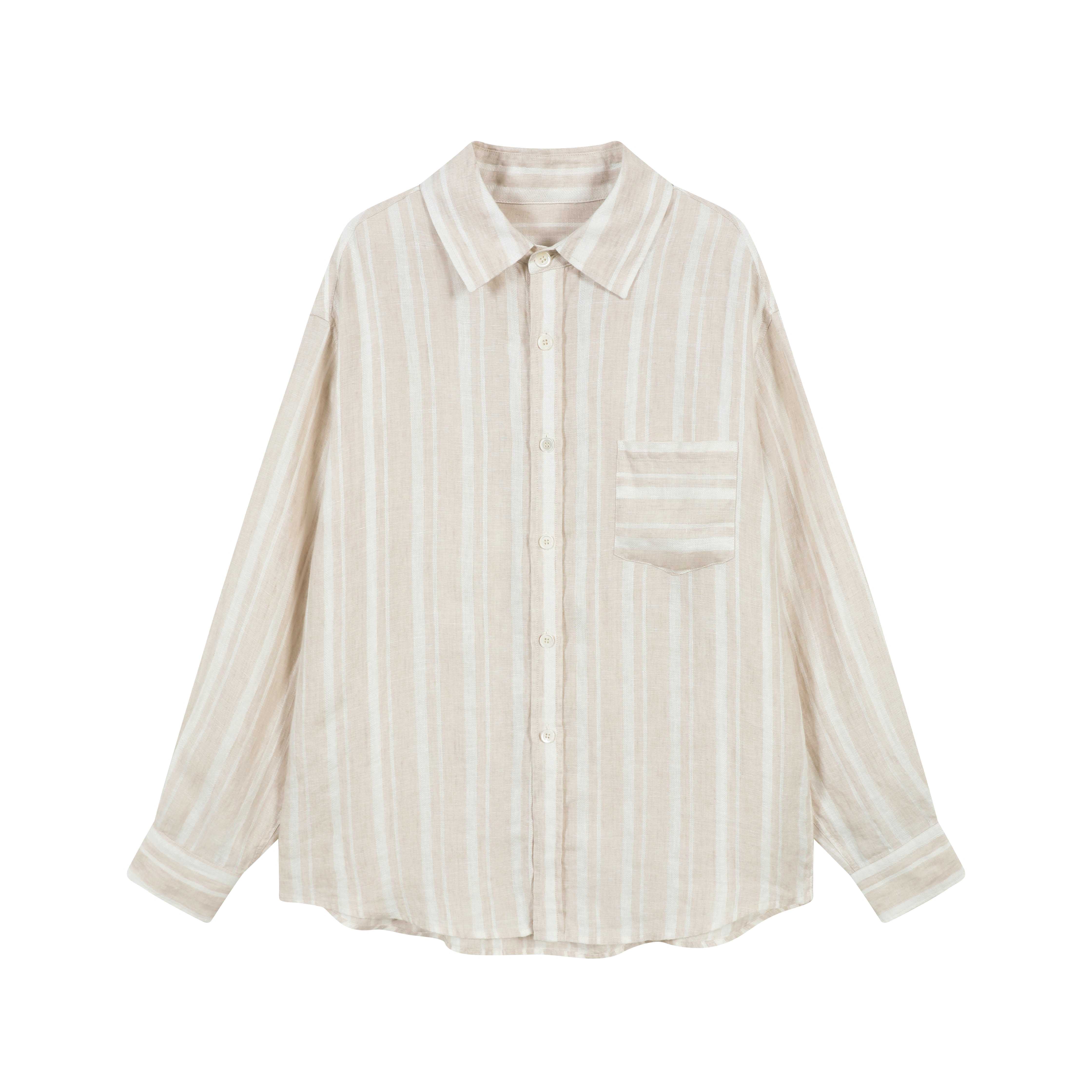 📚 WATEREVER | 「清泉」纯亚麻色织米白色条纹长袖衬衫轻薄防晒衣