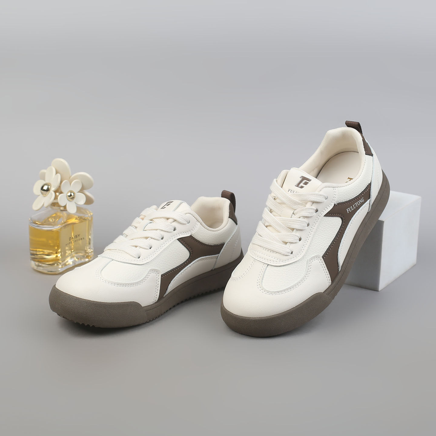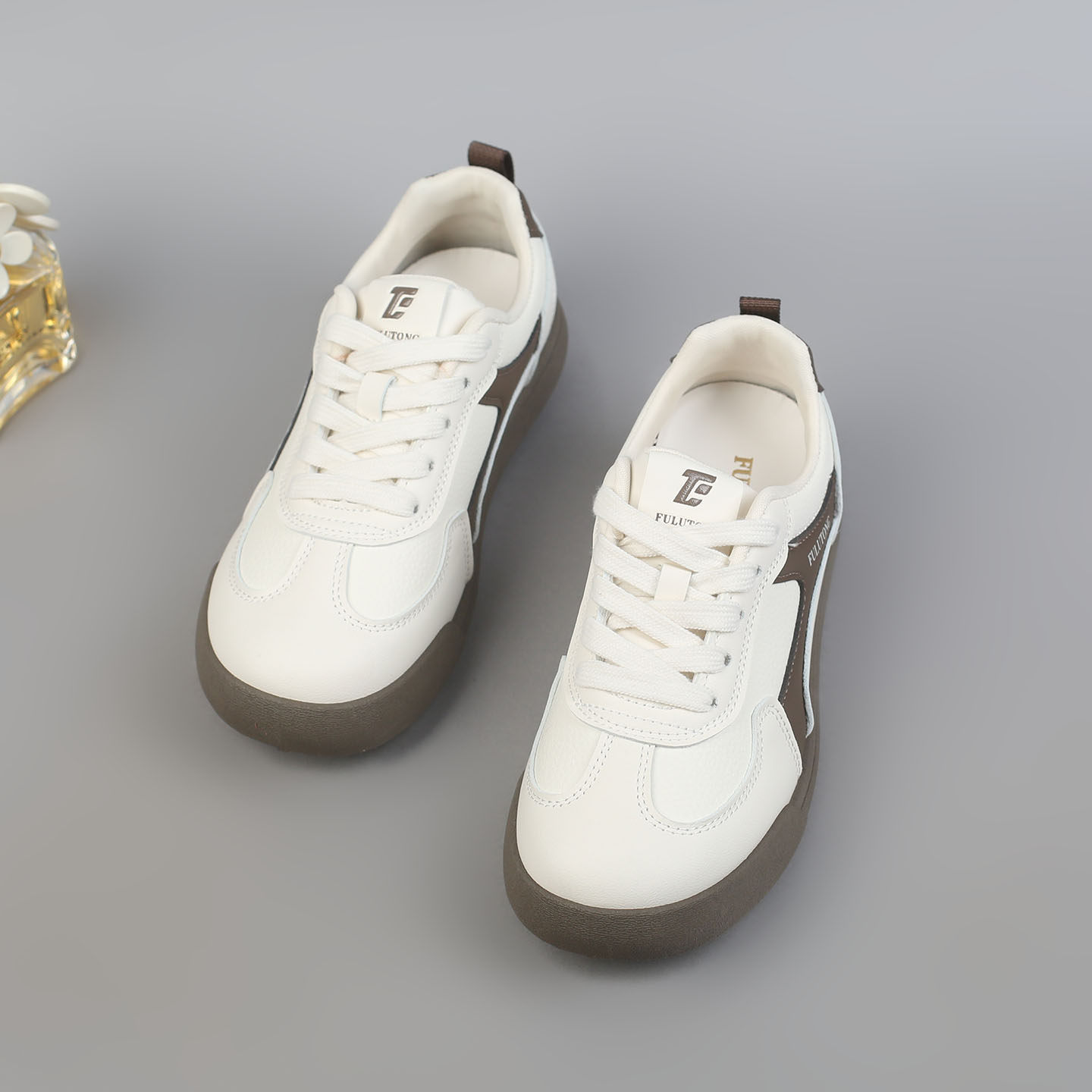 📚 福禄桐德训鞋女2026年春季新款女鞋平底舒适板鞋拼色系带休闲鞋子