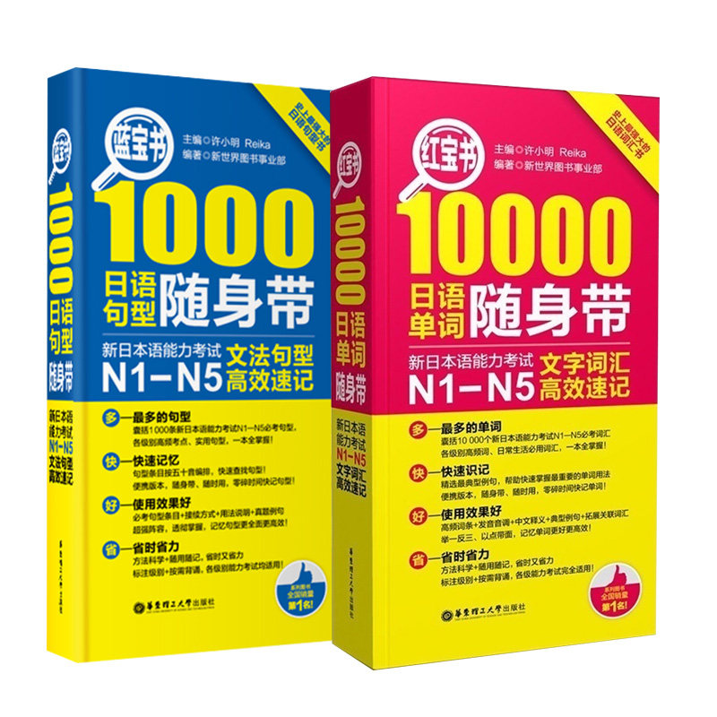 📚 蓝宝书1000+红宝书10000 日语句型随身带 新日本语能力考试N1-N5文法句型高效速记 日语语法文法 许小明 高中高考日语教材书籍