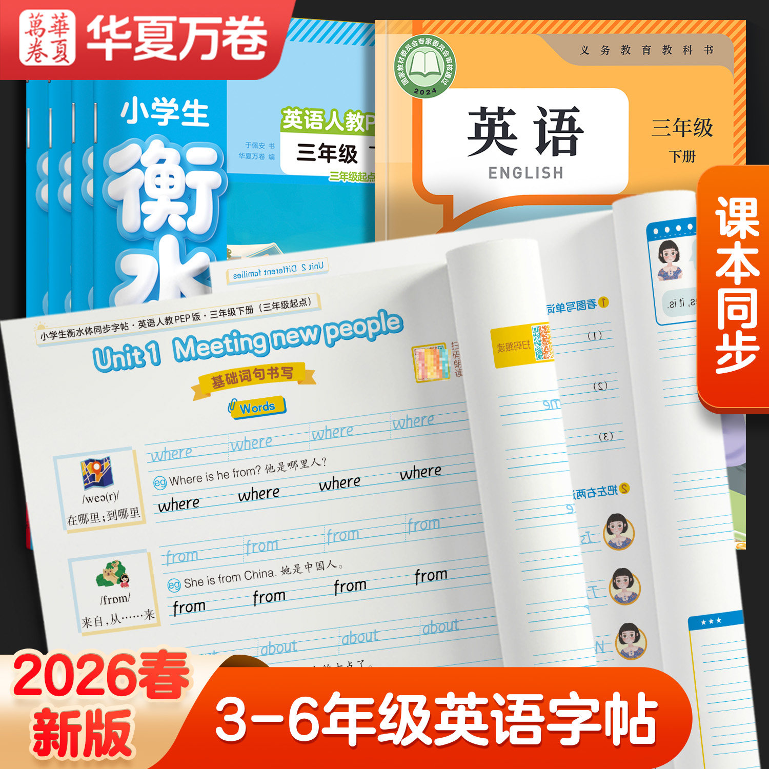 📚 2026春华夏万卷衡水体英语字帖三年级四年级五六年级上下册英语同步字帖小学生专用pep人教版教材英文单词字母描红小学英语练字帖