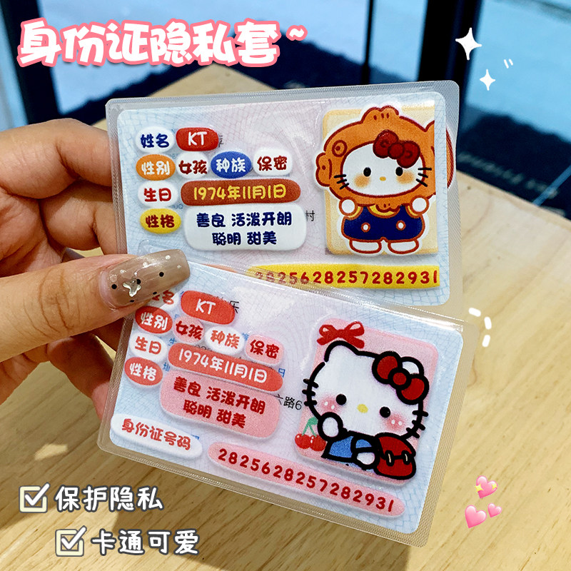 📚 卡通kt猫挡脸身份证卡套证件卡套身分证袋校园卡遮挡非透明保护套