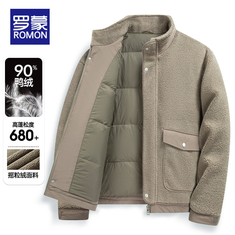 📚 罗蒙羊羔毛羽绒服男款冬季2025新款摇粒绒加厚保暖男士颗粒绒外套
