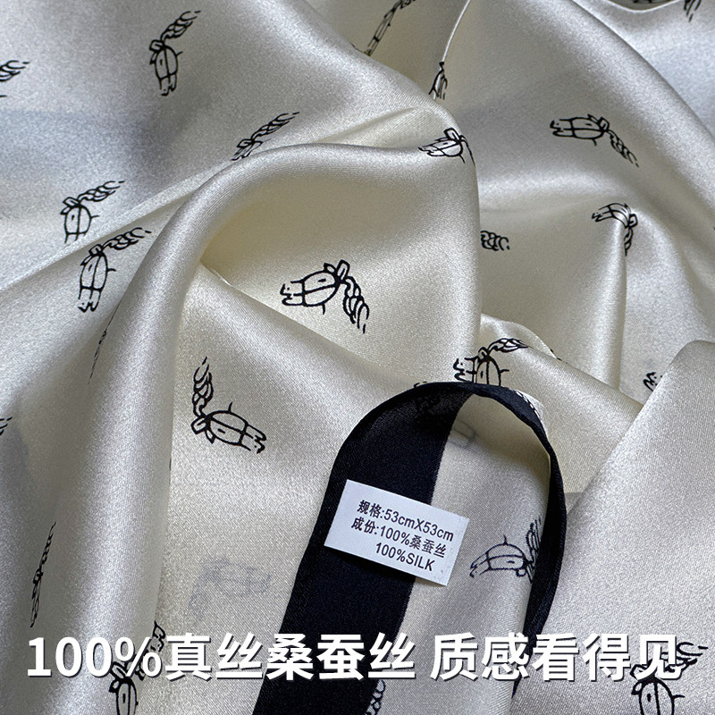 📚 杭州丝绸女100%真丝丝巾女桑蚕丝百搭经典小马小领巾真丝围巾方巾