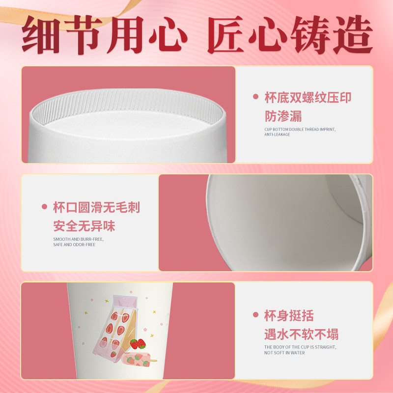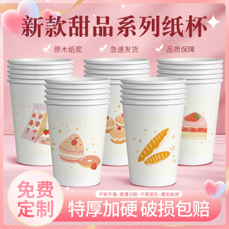 📚 一次性纸杯子新款甜品系列甜美风家用加厚茶水杯专用商用整箱批发