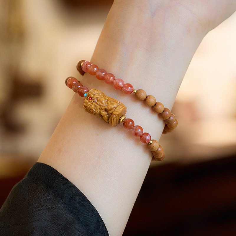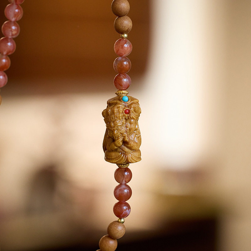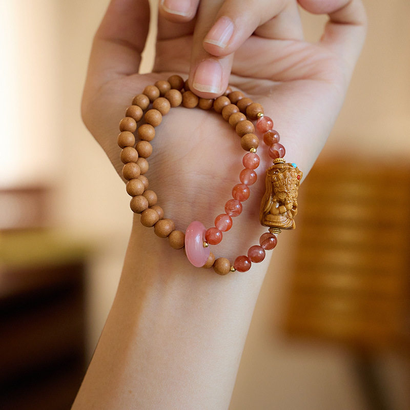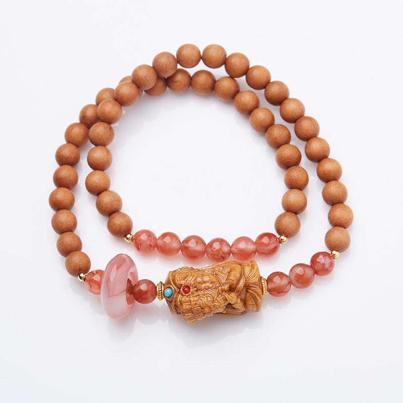 📚 天然奶香芭比檀木扎基拉姆手串女士南红玛瑙文玩佛珠手链串珠