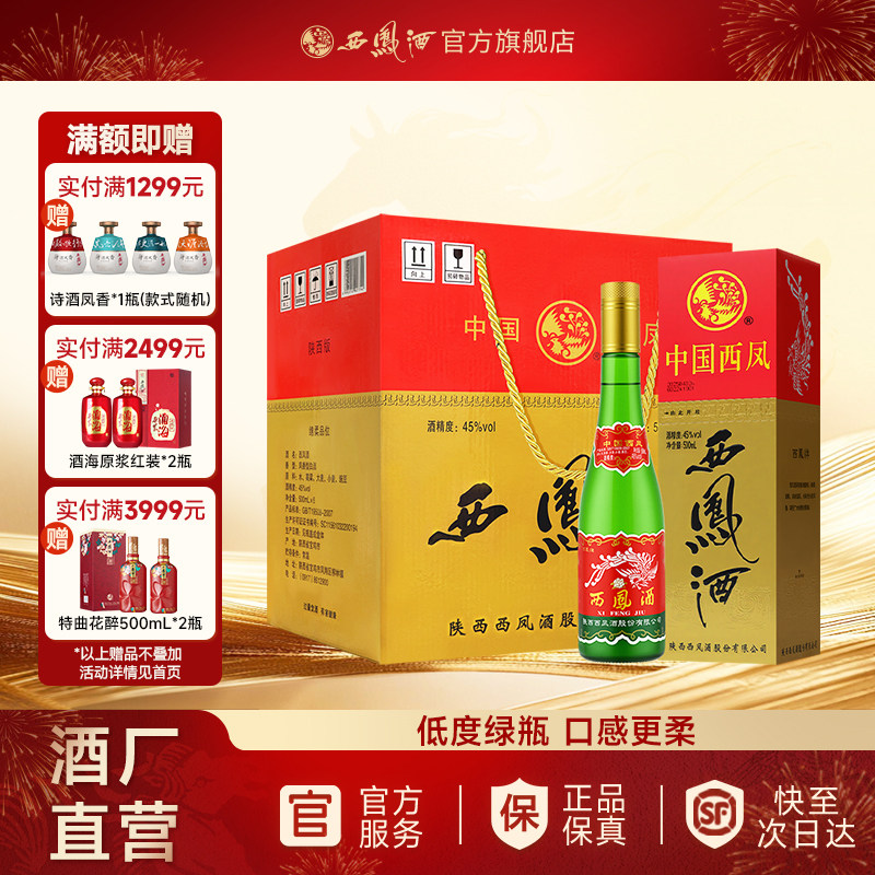📚 【陕西版三防伪】西凤酒45度老绿瓶盒装 纯粮白酒年货送礼500ml