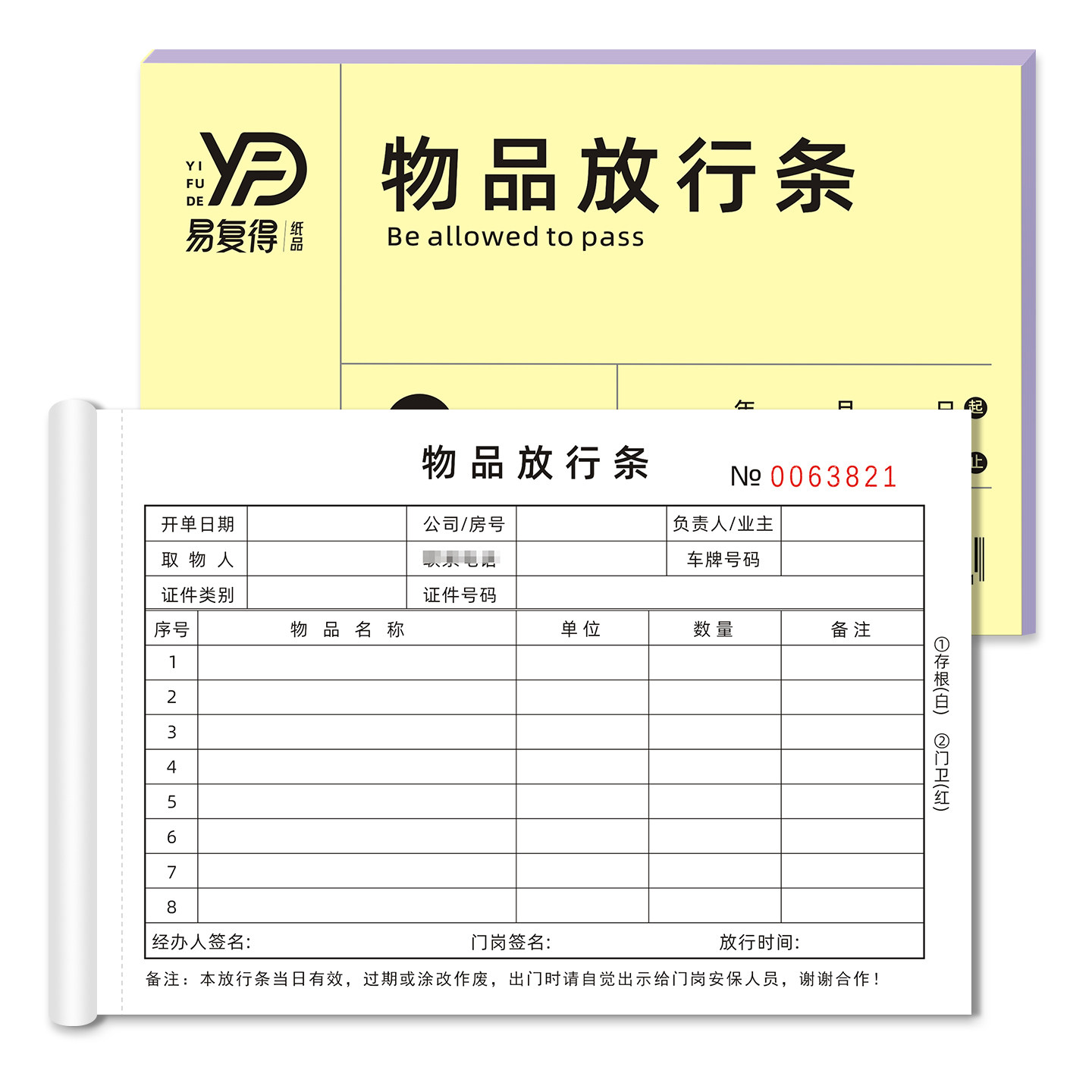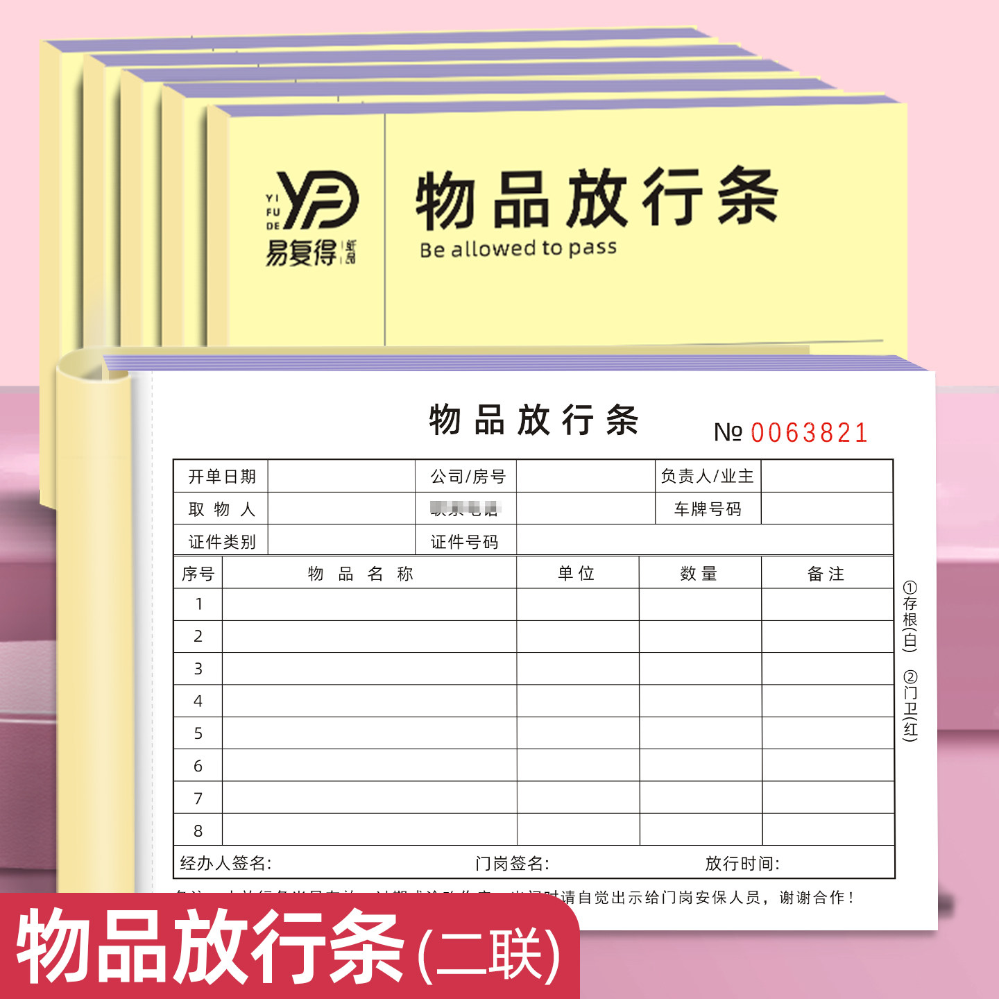 📚 物品放行条二联员工货物出门证小区出入放行单仓库货物放行条定制