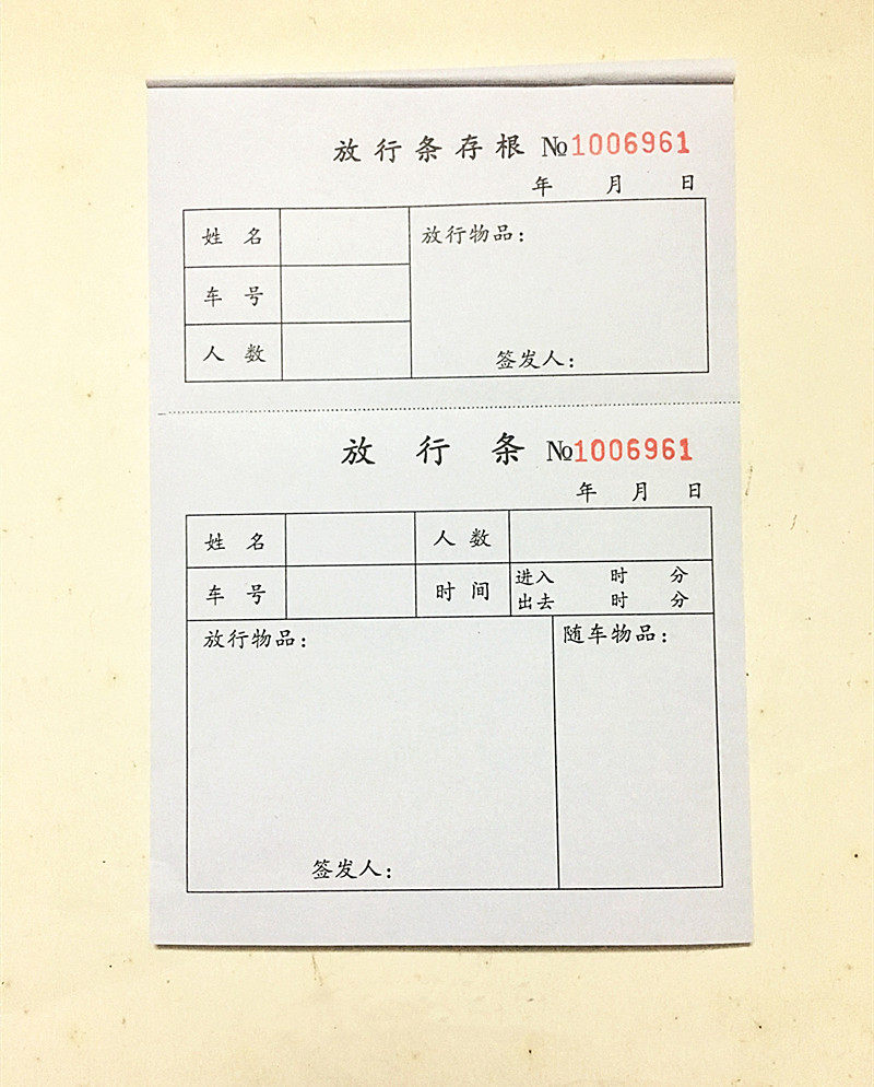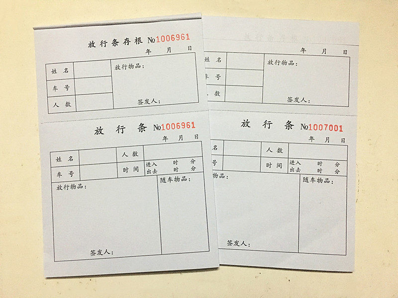 📚 32开存根式放行条32K车库进出放行条门卫放行条物品放行条出门条