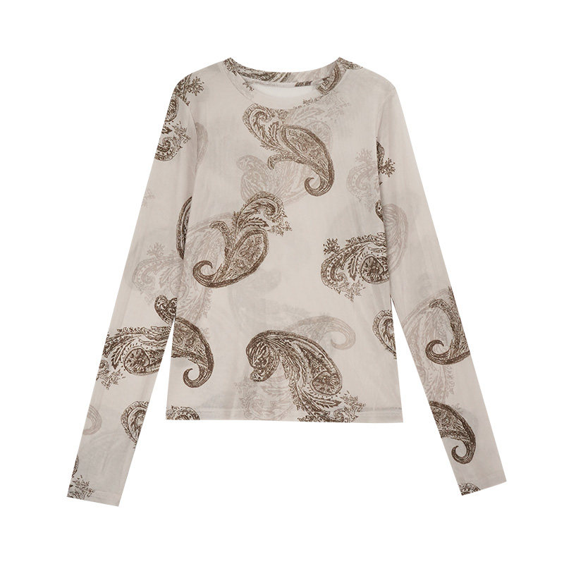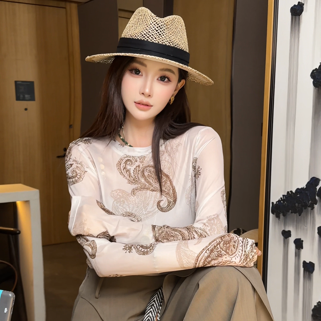 📚 利达NEWDADADA复古印花冰丝防晒罩衫女2026春长袖修身t恤上衣体恤
