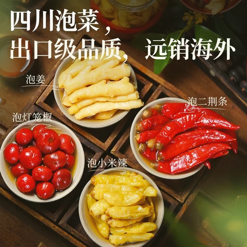 📚 四川辣三宝泡姜泡椒组合泡菜泡仔姜泡二荆条红辣椒泡小米辣野山椒