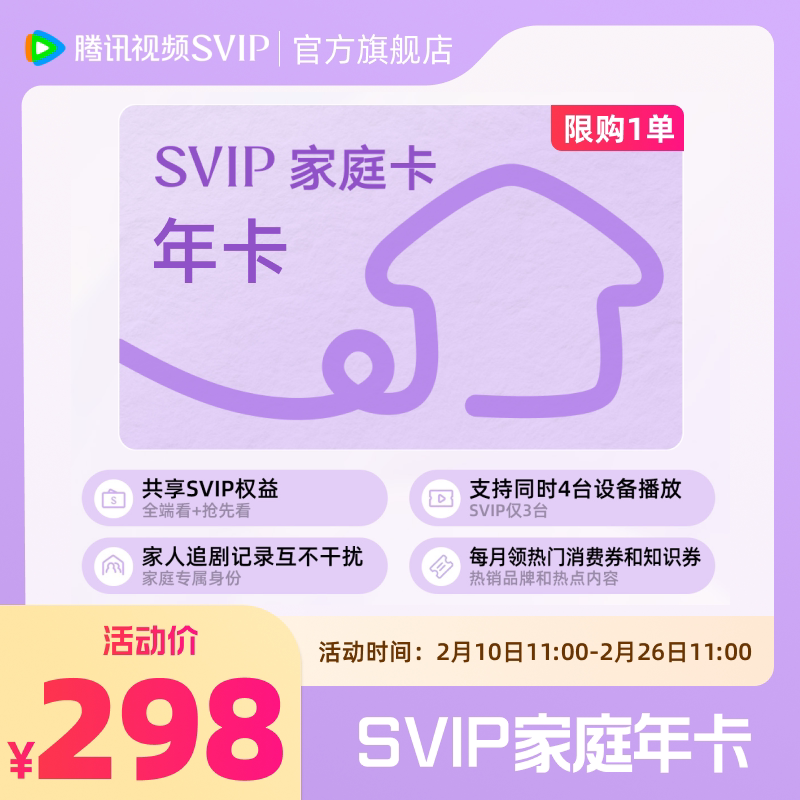 📚 【SVIP家庭卡年卡】腾讯视频SVIP家庭卡年卡12个月全家享会员