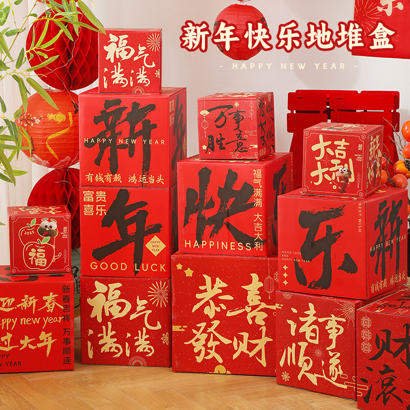 📚 新年堆头礼盒摆件2026马年装饰元旦过年春节商场橱窗拍照场景布置