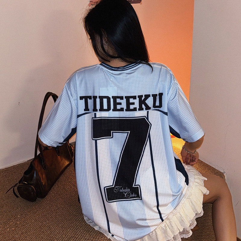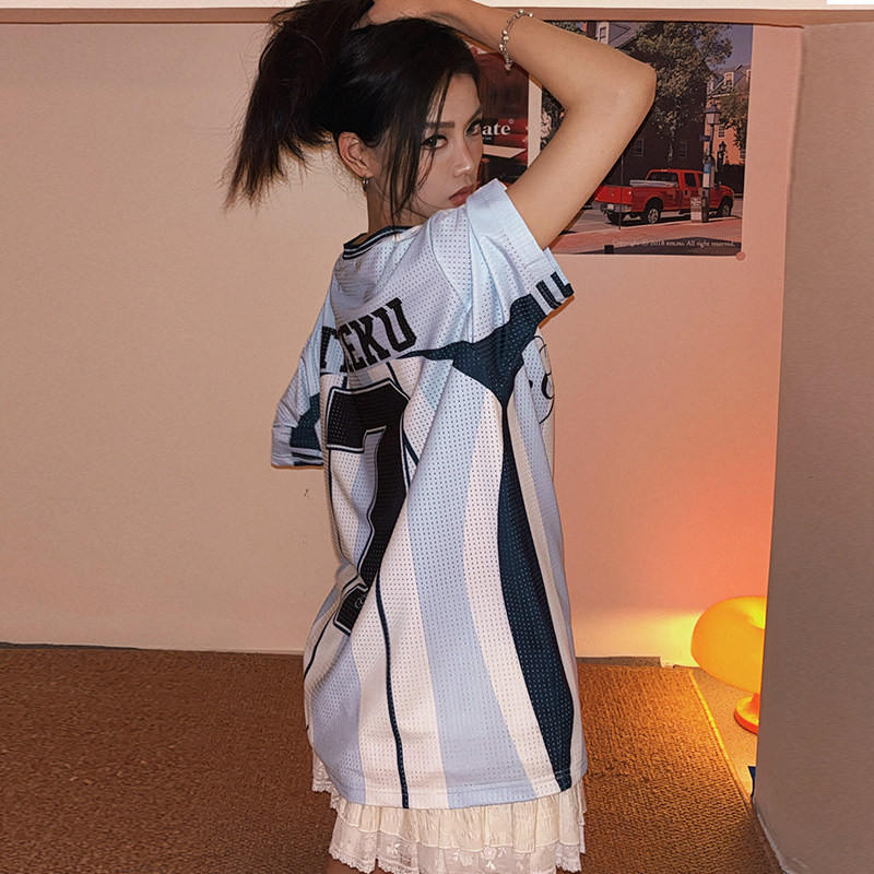 📚 DoubleD美式泽西风条纹7号运动球衣透气短袖T恤女夏宽松情侣上衣