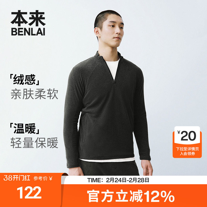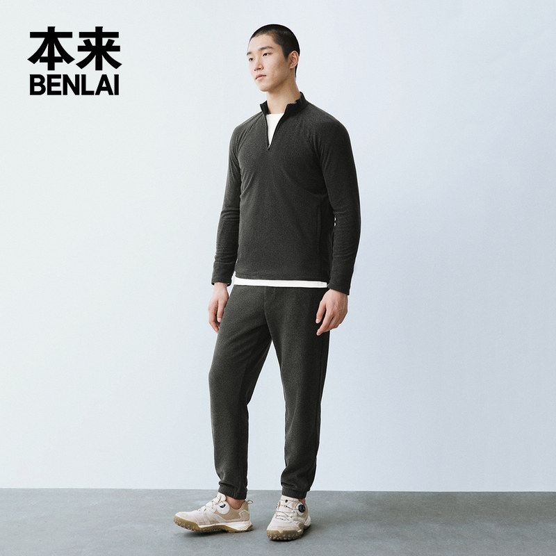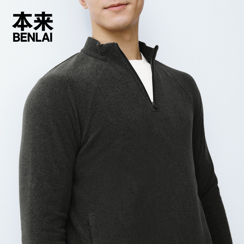 📚 本来BENLAI男士火绒绒半拉链卫衣秋季新款抓绒保暖运动打底上衣