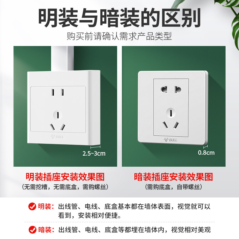 📚 公牛明装五孔插座明线盒86型二开十孔16a空调带开关多孔电源面板