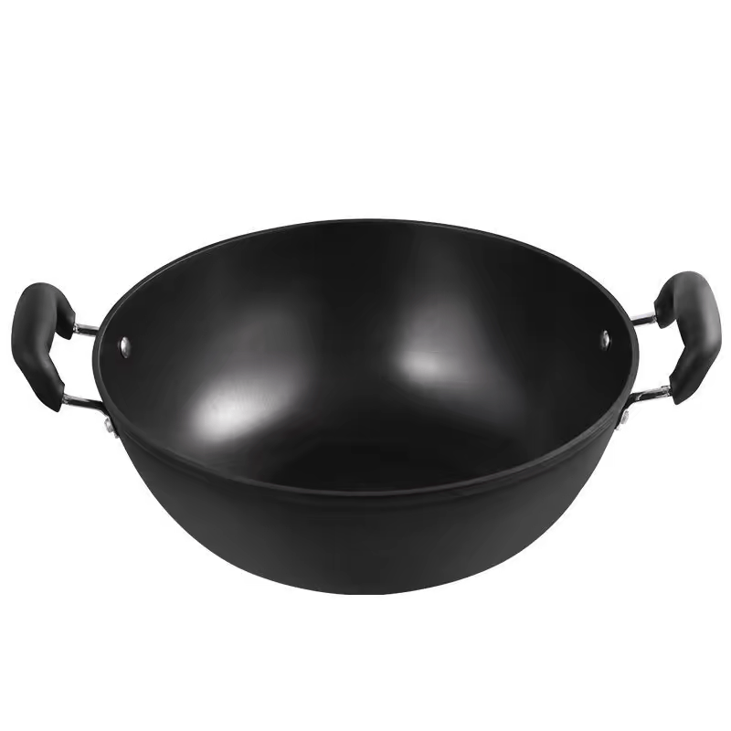 📚 加厚老式铸铁大号加深炒锅电磁炉专用双耳铁锅大锅平底炒菜锅家用