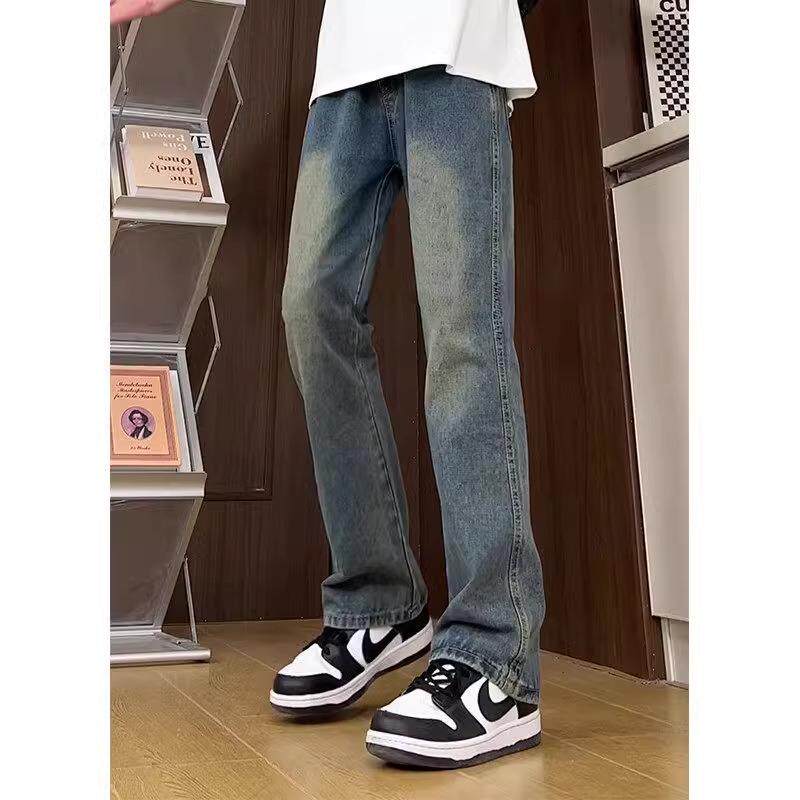 📚 美式vibe黄泥色抽绳松紧腰牛仔裤男直筒提档版型裤子高个子微喇裤