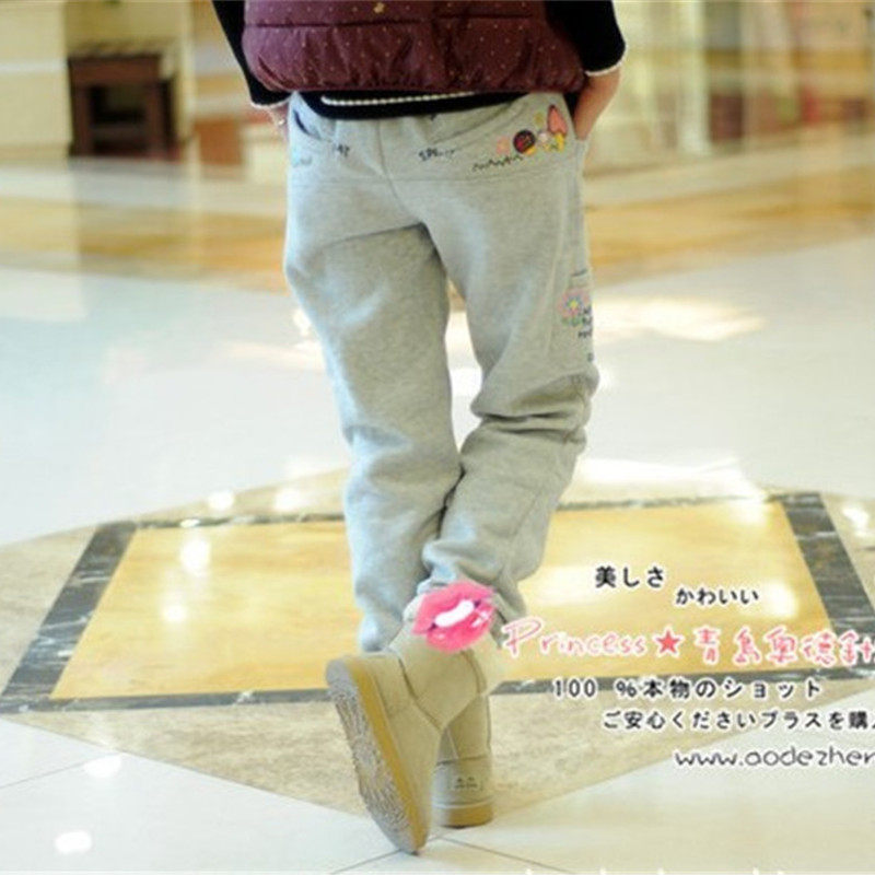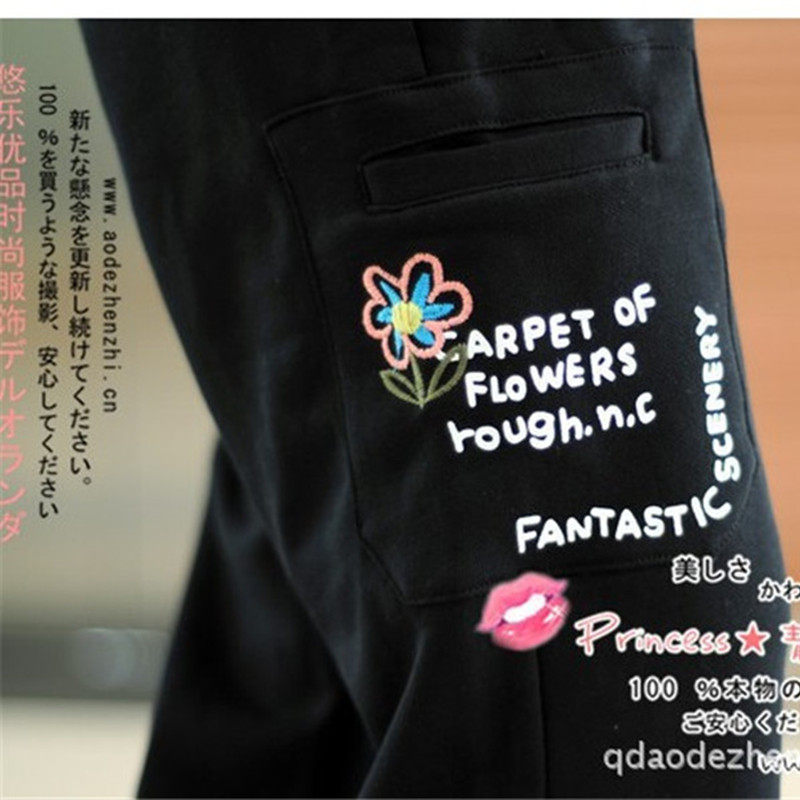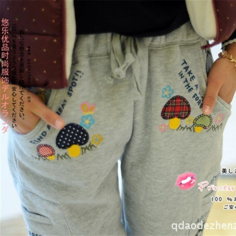 📚 rough春秋加绒加厚运动裤女绣蘑菇直筒宽松休闲裤长裤中学生卫裤