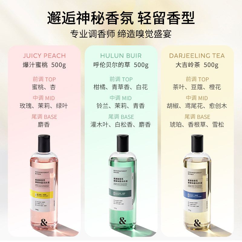 📚 99元4件高浓缩香氛洗衣液森林海洋持久留香护衣护色天然酵素洁净