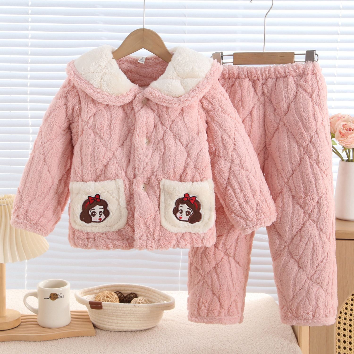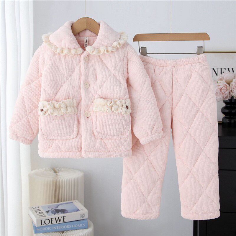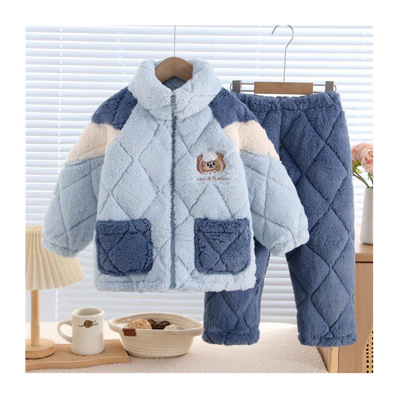 📚 冬季儿童加厚睡衣女童三层夹棉法兰绒家居服套装宝宝男童加绒保暖