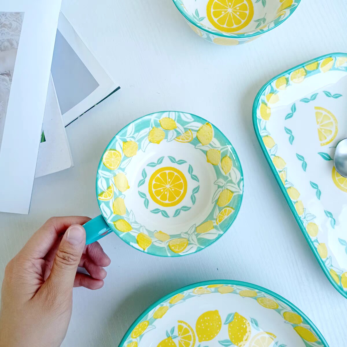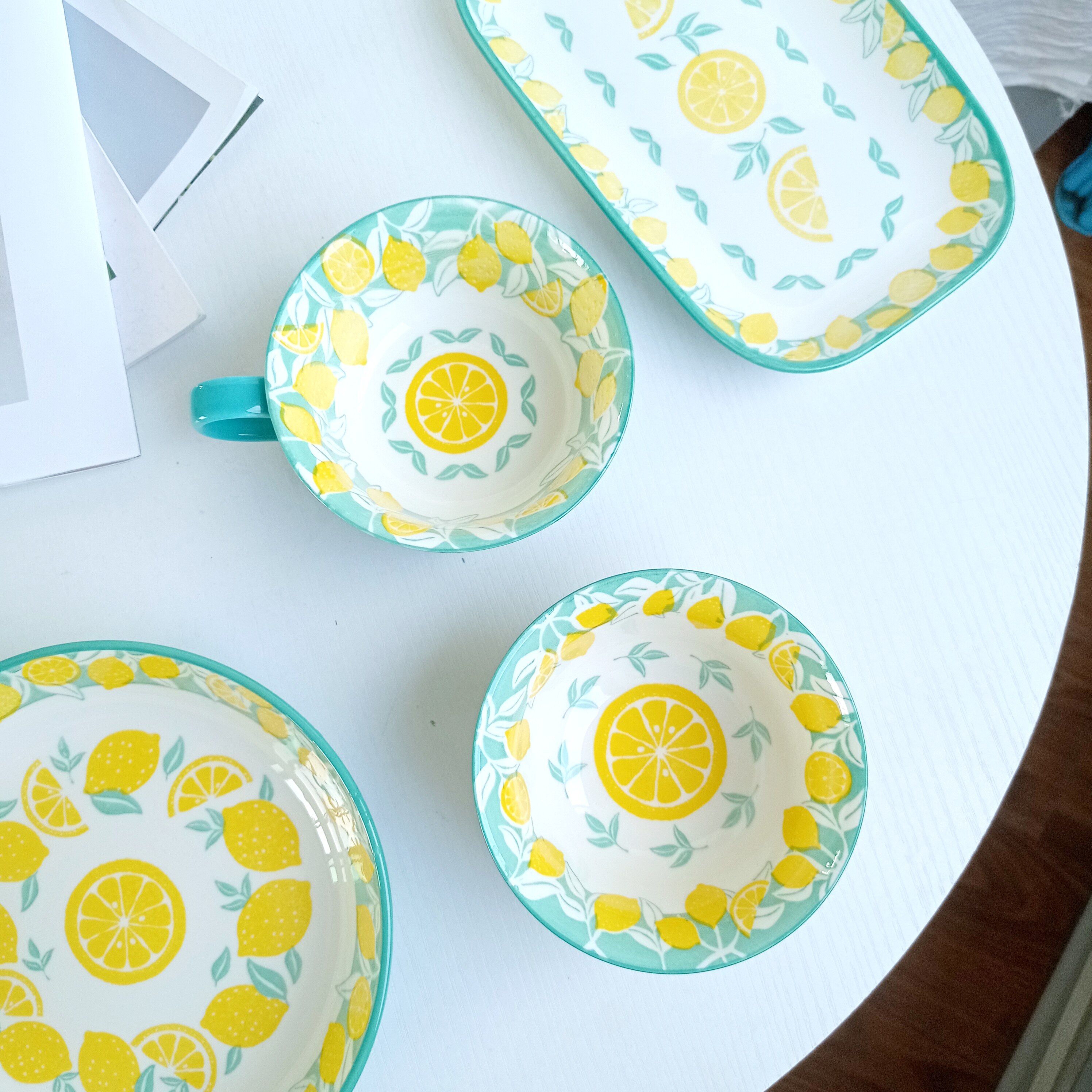 📚 日本casa柠檬餐具家用陶瓷盘子碗套装釉下彩工艺洗碗机微波炉可用