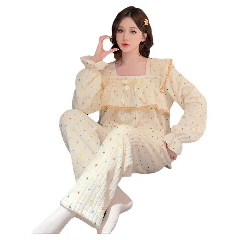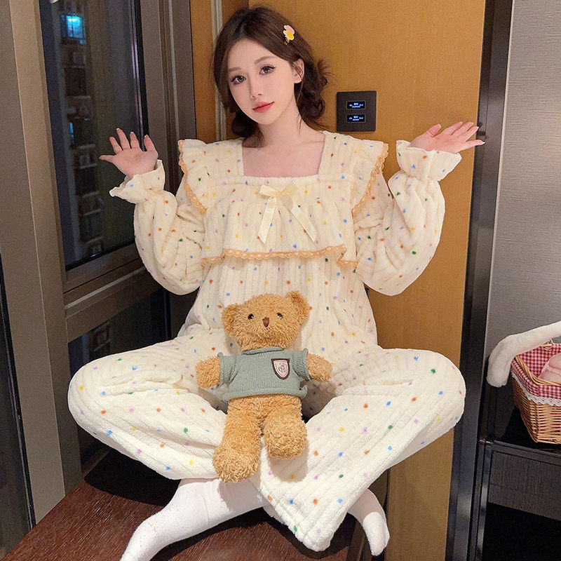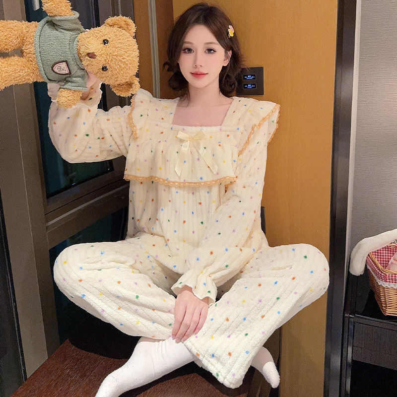 📚 珊瑚绒睡衣女款2025冬季新款长袖冬天薄款法兰绒网红风家居服套装
