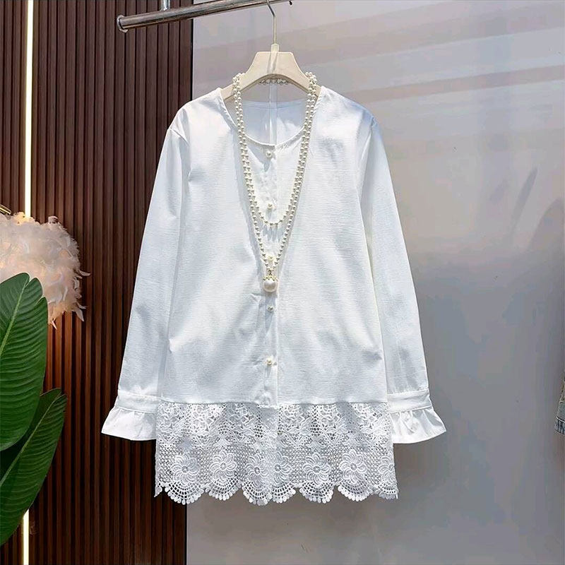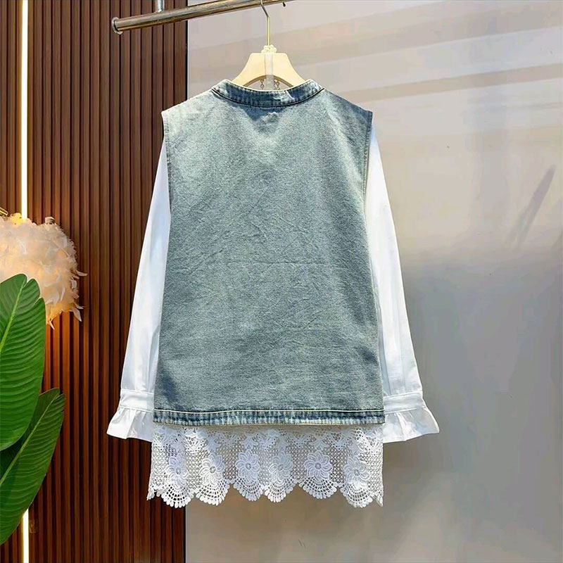📚 新款欧洲站复古重工艺刺绣马甲大码女装胖mm时尚拼接蕾丝打底衫女