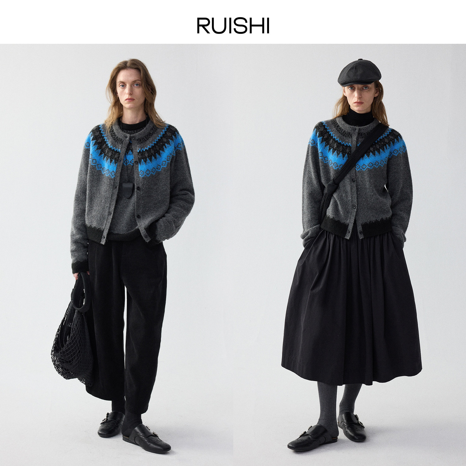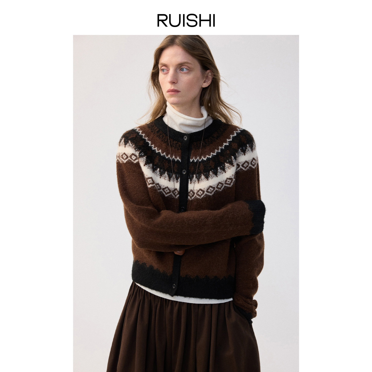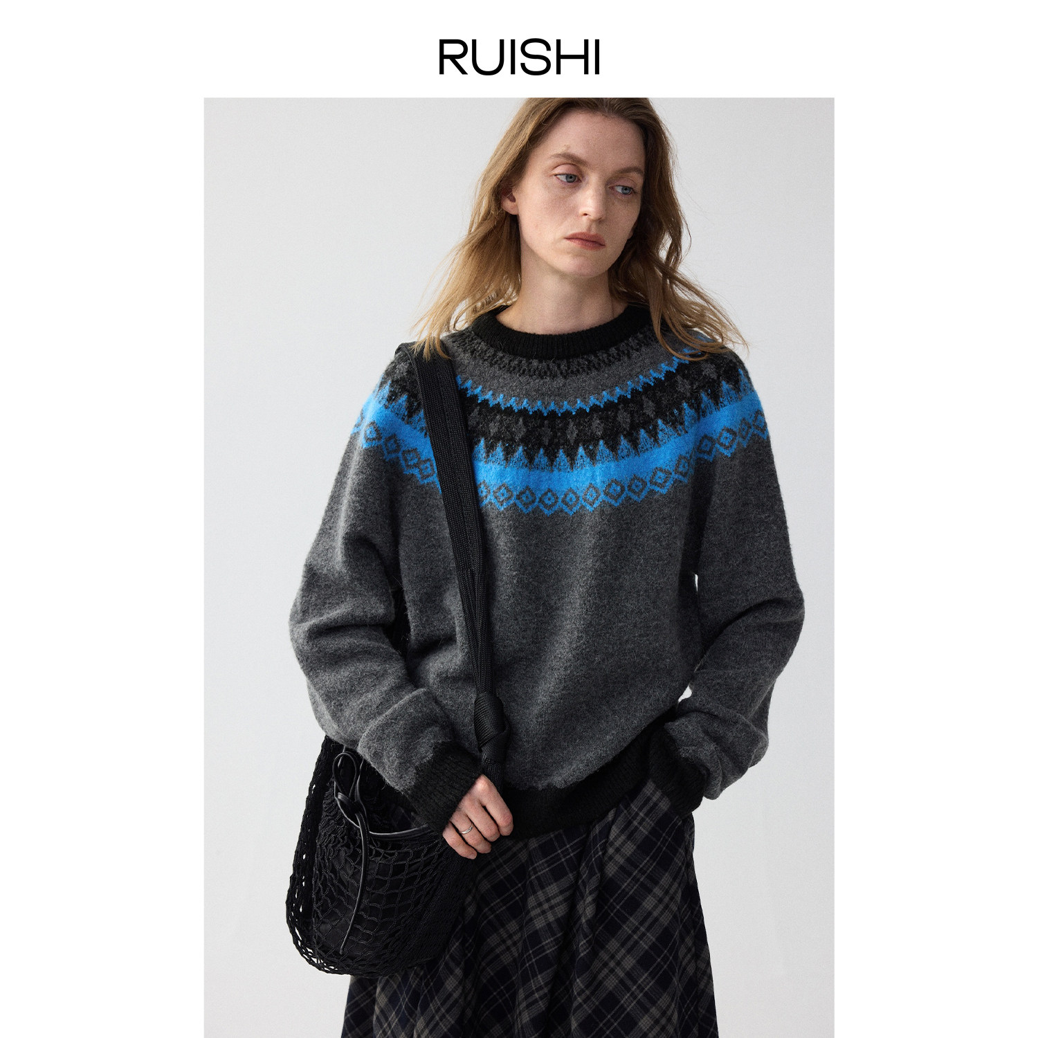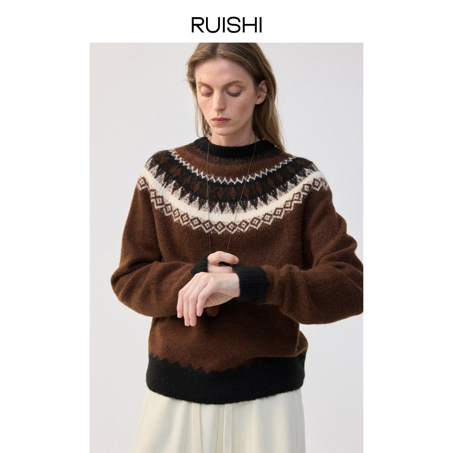 💥RUISHI芮时北欧岛屿羊毛羊驼毛混纺撞色提花图案毛衣,让你心动不已!💖