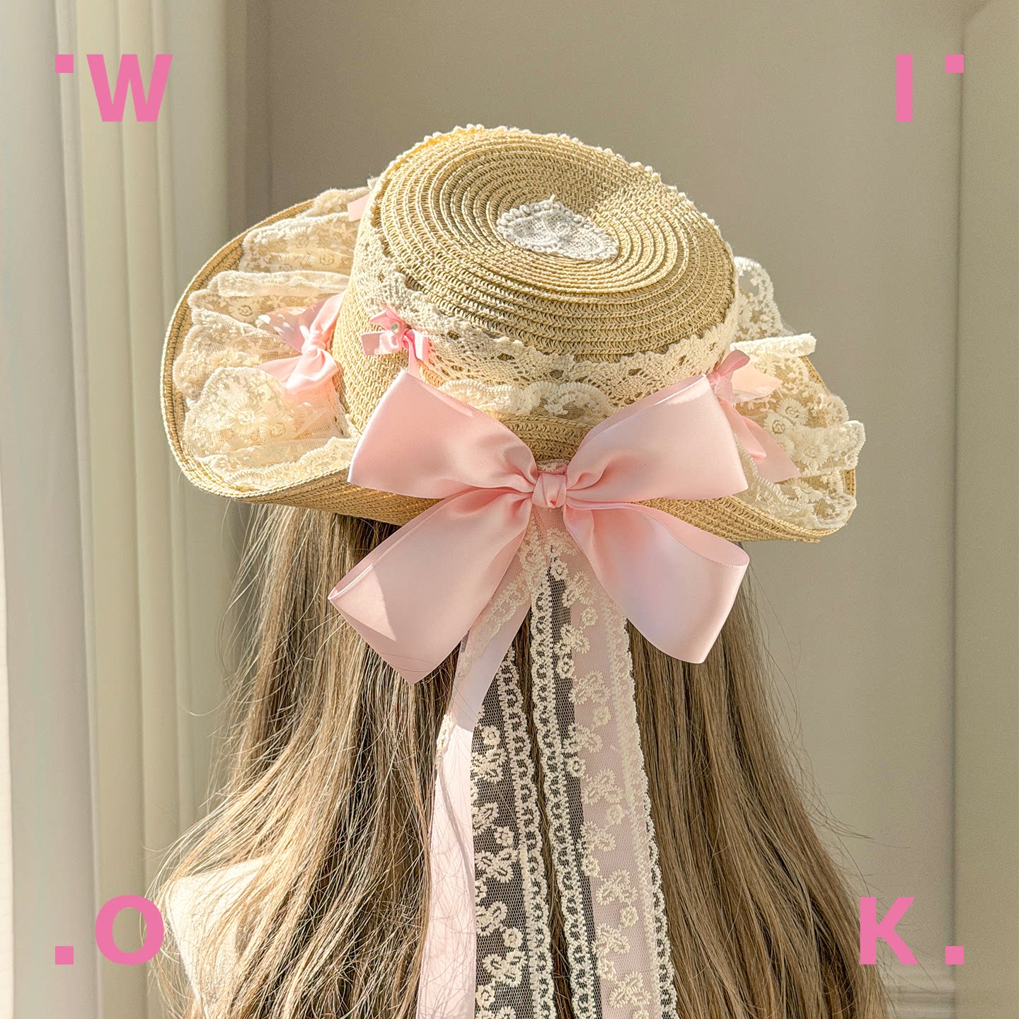 📚 WIOK 原创夏野织风洛丽塔草帽粉蝴蝶结蕾丝Lolita田园风少女茶会