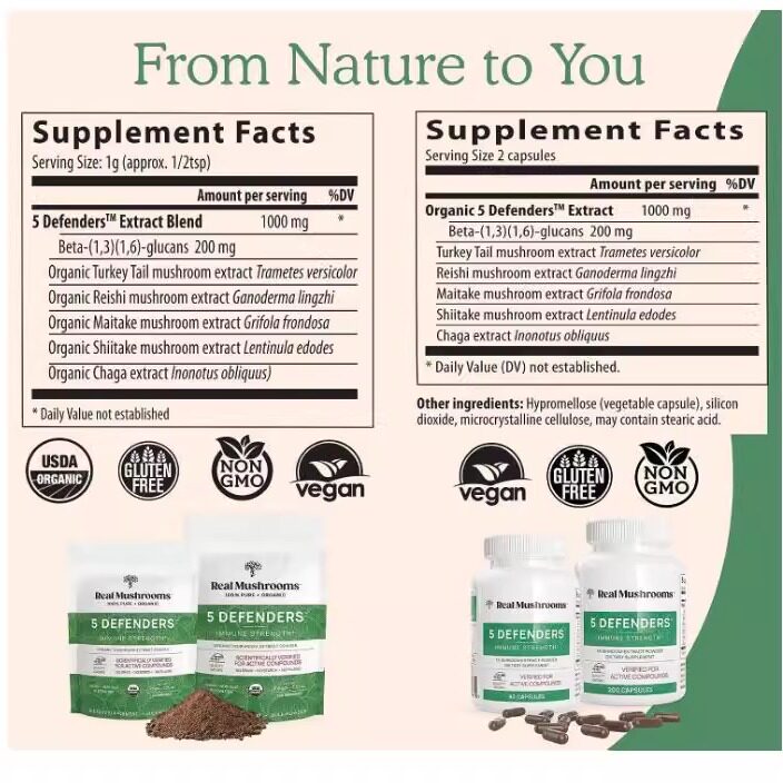 📚 美国灵芝蘑菇舞茸胶囊保健品5 Defenders免疫力能量易疲劳家人健