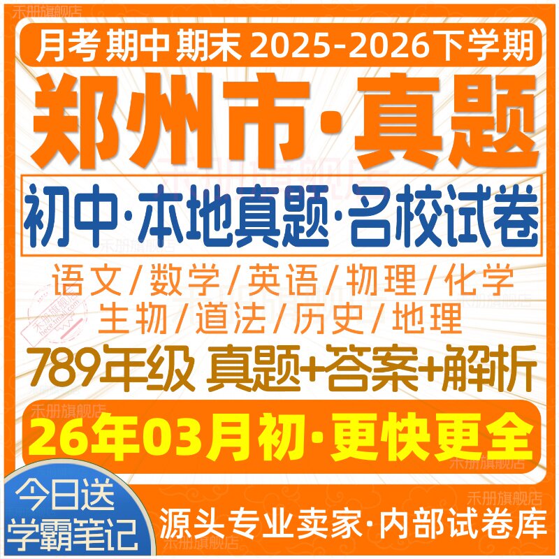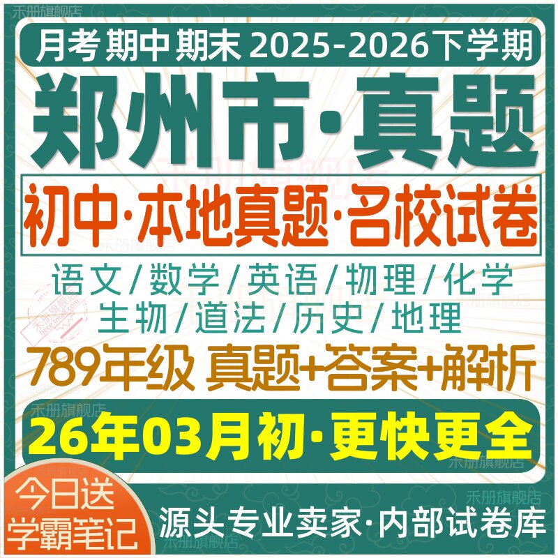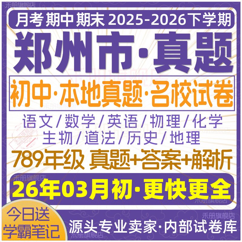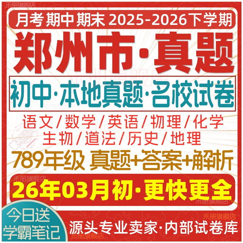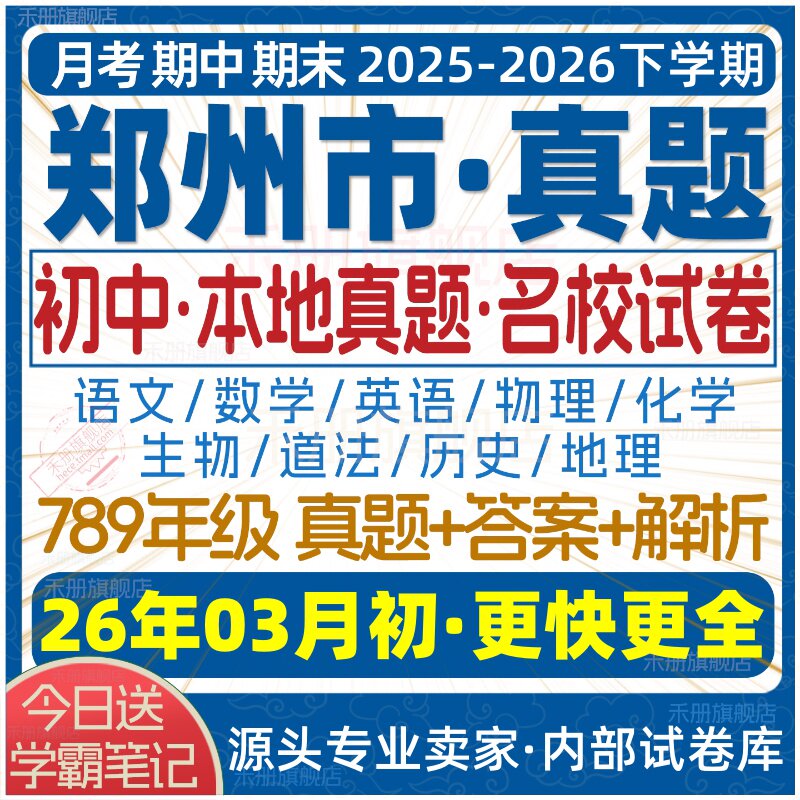 📚 2026新版郑州市初中七八九年级上册下册月考期中期末真题试卷初一初二初三数学语文英语物理化学生物地理历史道法试题练习电子版