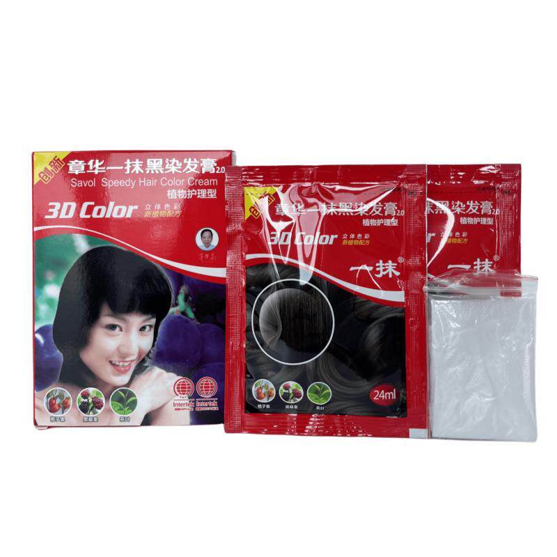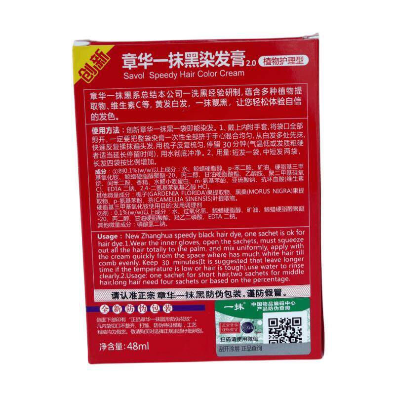 📚 48ml章华一抹黑焗油染发膏H植物护理型便携袋装染发剂送父母红盒