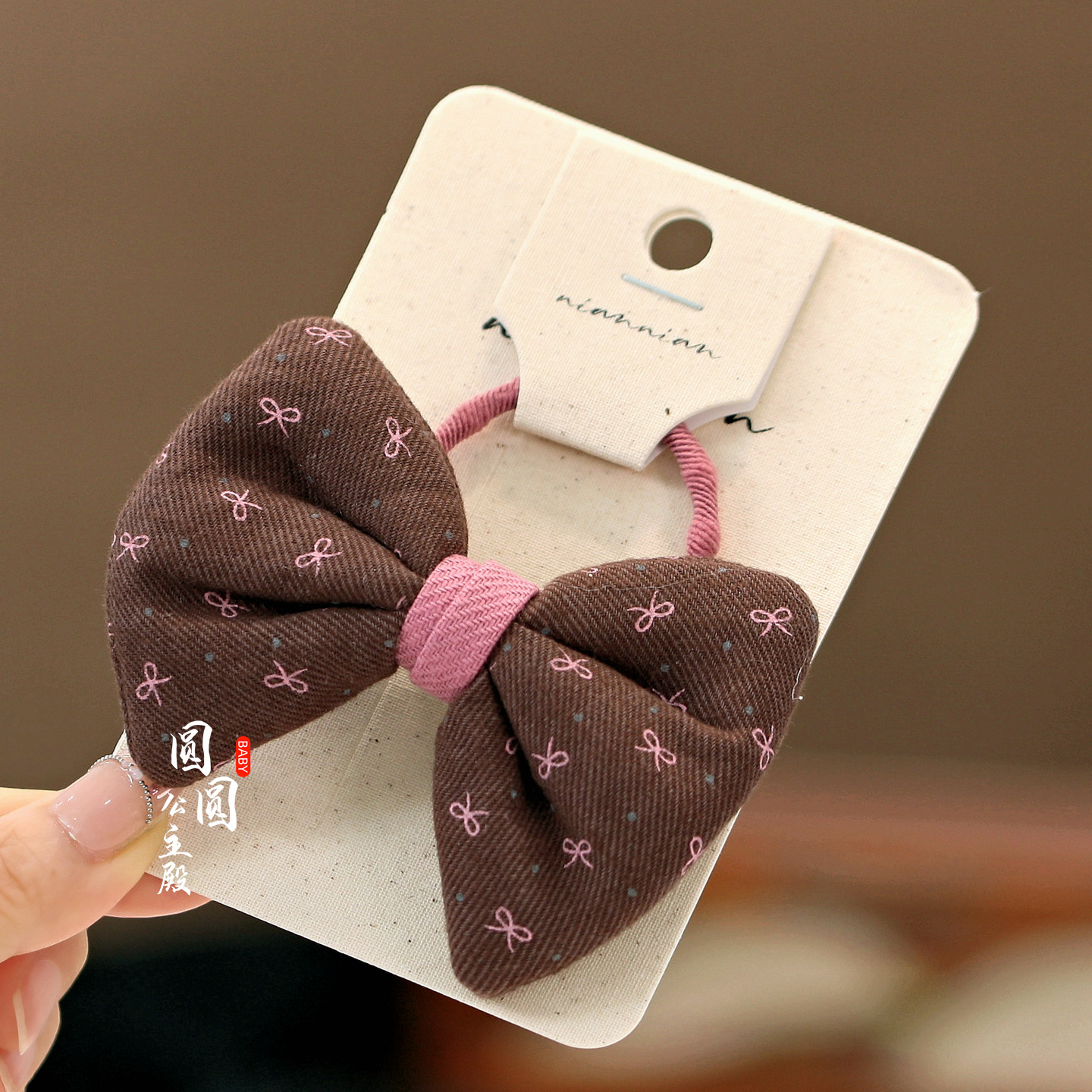 📚 念念复古粉咖蝴蝶结儿童马尾发圈小女孩高弹力丸子头绳学院风头饰
