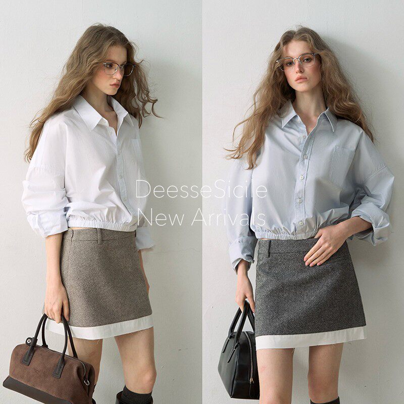 📚 Deessesicile法式智性全棉衬衫减龄简约设计感收腰显瘦翻领上衣女